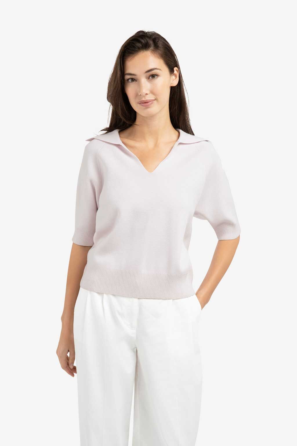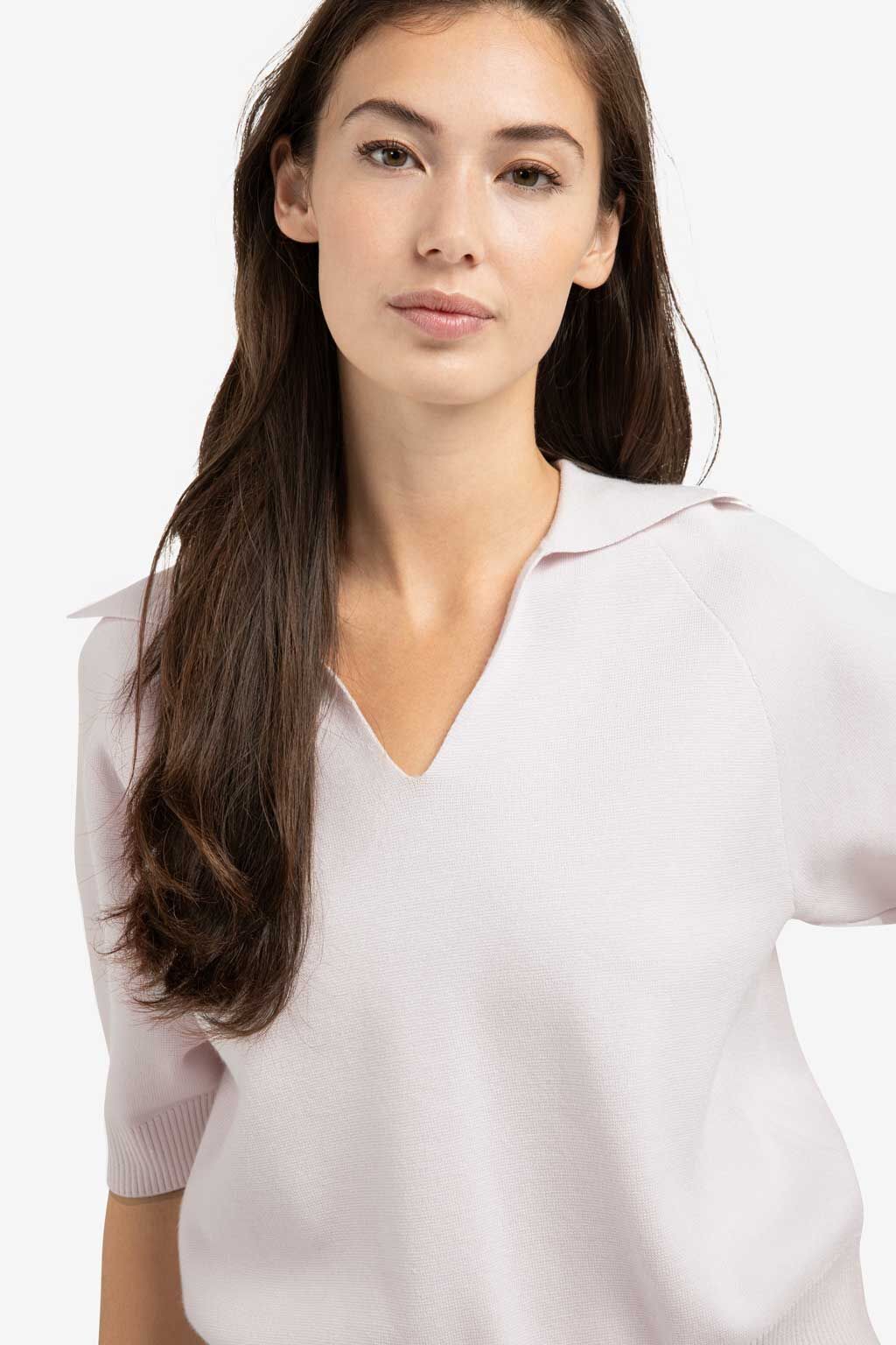 Dieser raffinierte Pullover aus weichem Strickmaterial besticht durch einen offenen V-Ausschnitt und einen eleganten Kragen. Die kurzen Ärmel und die normale Passform sorgen für ein angenehmes und luftiges Tragegefühl, und die gerippten Ränder verleihen ihm eine dezente Struktur. Die perfekte Wahl für einen stilvollen, lässigen Look. Das Model ist 175 cm groß und trägt Größe S.