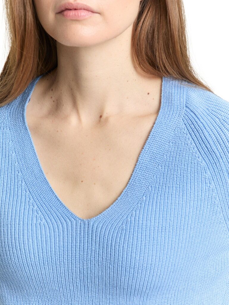 Pullover aus Baumwolle mit V-Ausschnitt und Rippstruktur