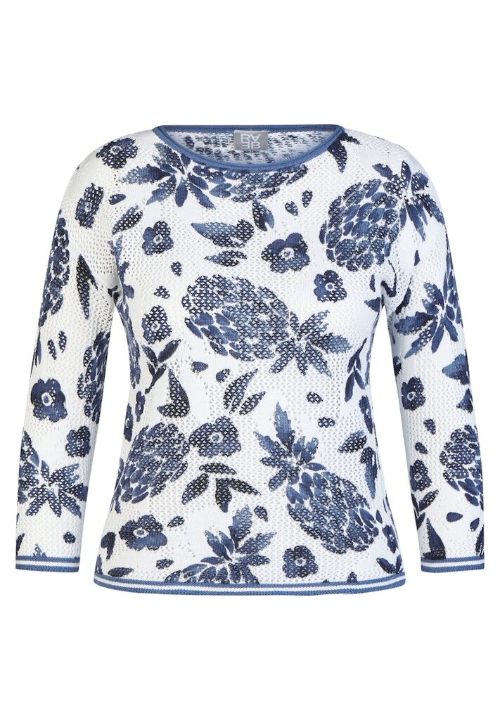 Die feine Lochstruktur verleiht diesem Strickshirt eine luftige, lebendige Oberfläche. Florale Motive setzen einen dekorativen Akzent und unterstreichen den sommerlichen Charakter. Der klassische Rundhalsausschnitt und die 3/4-Ärmel sorgen für eine zeitlose, unkomplizierte Optik. Die leichte Baumwollqualität trägt sich angenehm und eignet sich ideal für warme Tage. Reine Baumwolle. Luftige Lochstruktur. Floraler Allover-Print. Rundhalsausschnitt. 3/4-Ärmel.