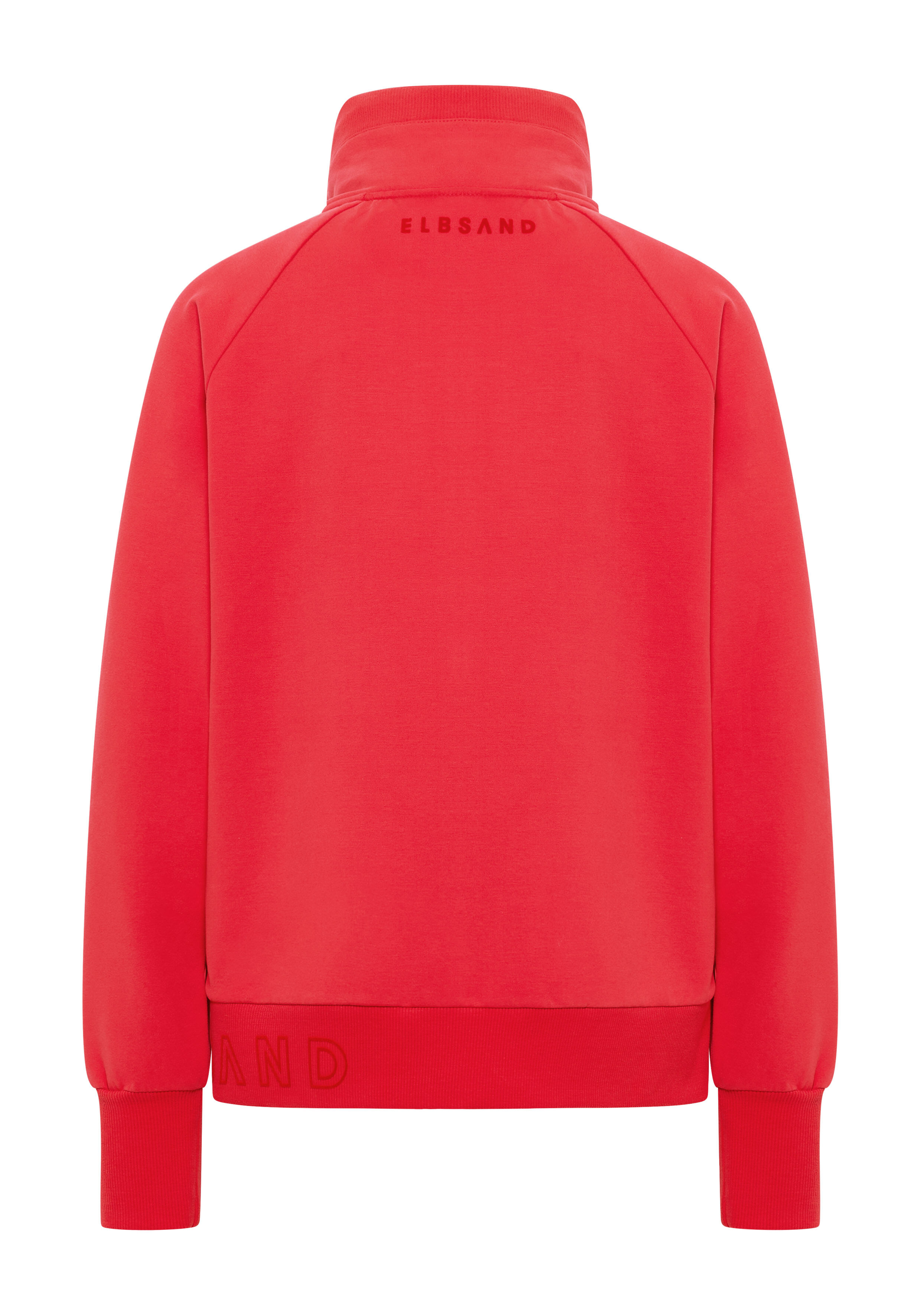 Die Sweatjacke "Aina" von ELBSAND vereint sportliche Funktionalität mit modernem Design. In der intensiven Farbe "Barberry" setzt sie ein modisches Statement und bleibt dabei herrlich bequem. Der hohe Kragen mit Kordelzug schützt an kühleren Tagen, während die elastischen Bündchen und der durchgehende Reißverschluss für optimalen Tragekomfort sorgen. Ein geprägtes ELBSAND-Detail am Saum rundet den Look stilvoll ab - perfekt für entspannte Alltagsoutfits mit einem Hauch Urban Chic.