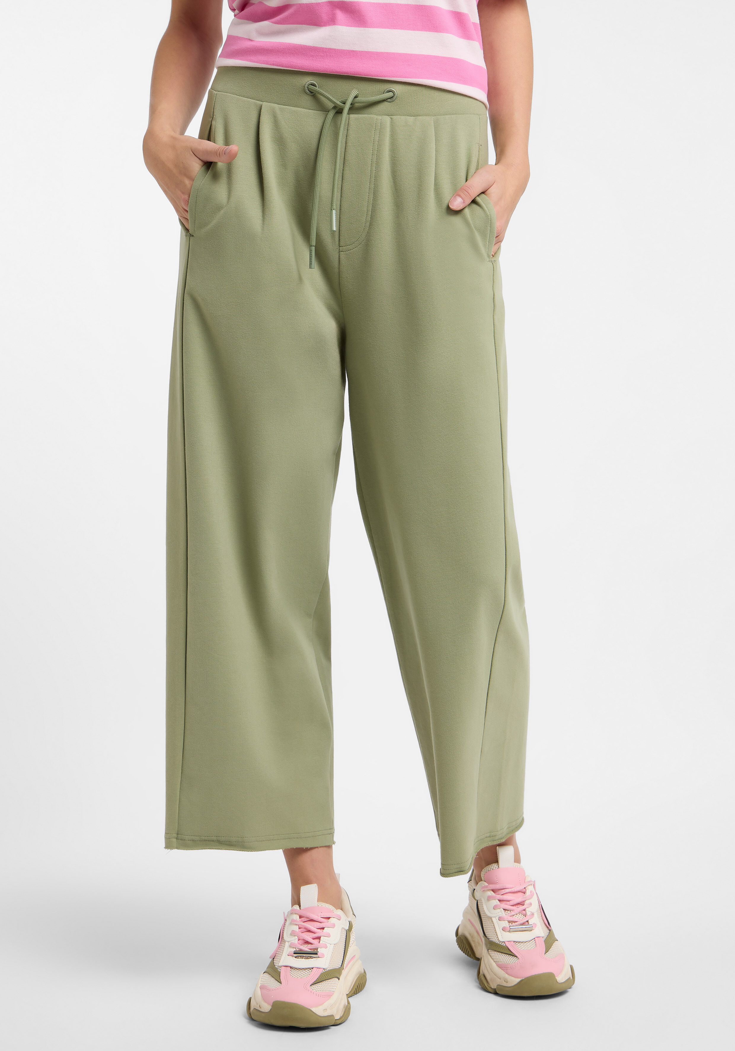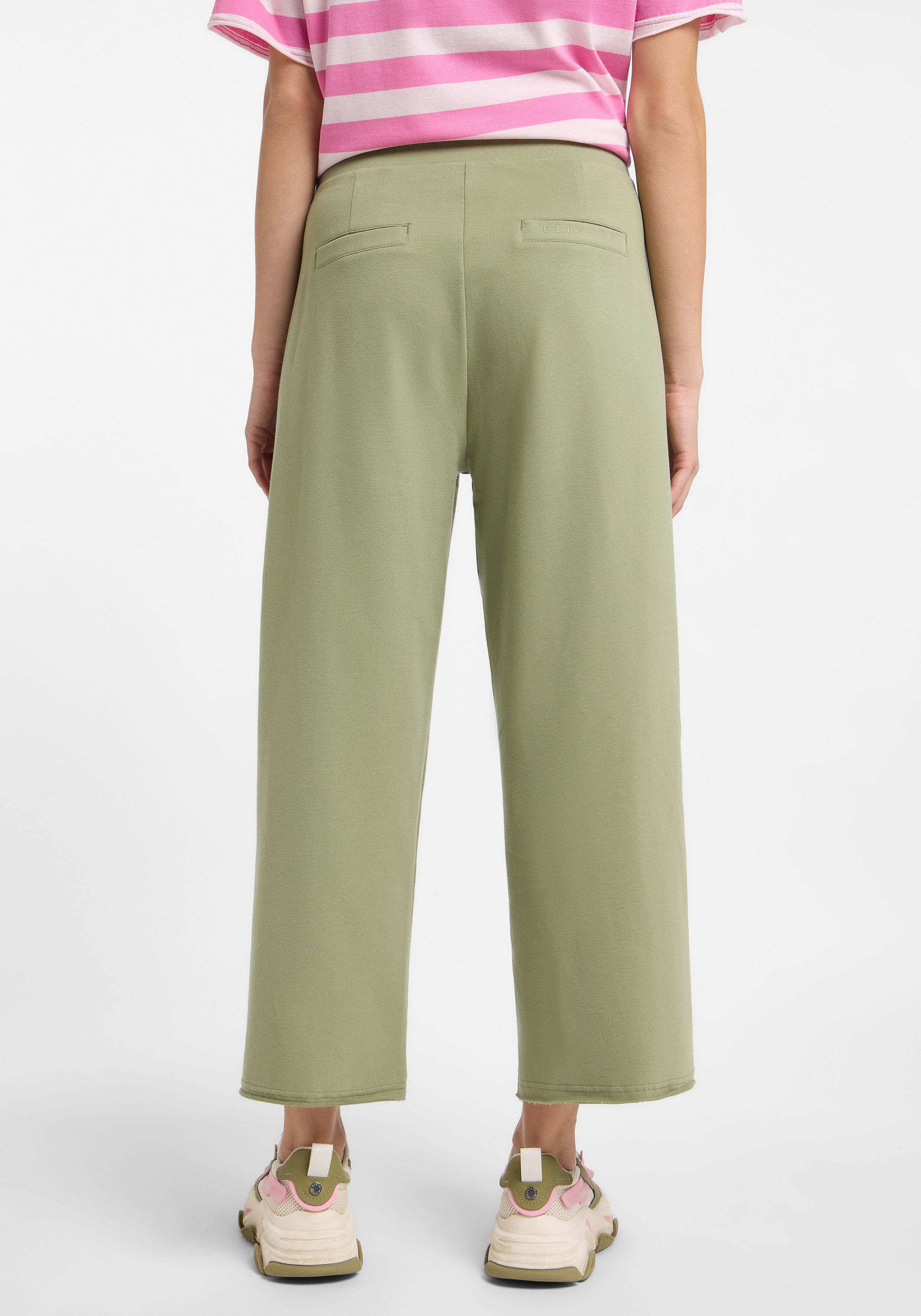 Die 7/8-Sweatpants "Neah" von ELBSAND ist die perfekte Wahl für entspannte Tage mit Stil. In der frühlinghaften Farbe "Grean Leaf" bringt sie Frische in deine Garderobe. Der breite Bund mit Tunnelzug sorgt für optimalen Sitz, während der weite Beinverlauf eine moderne Silhouette und maximalen Komfort bietet. Ideal für gemütliche Stunden zu Hause oder als Teil eines lässigen Freizeit-Looks.
