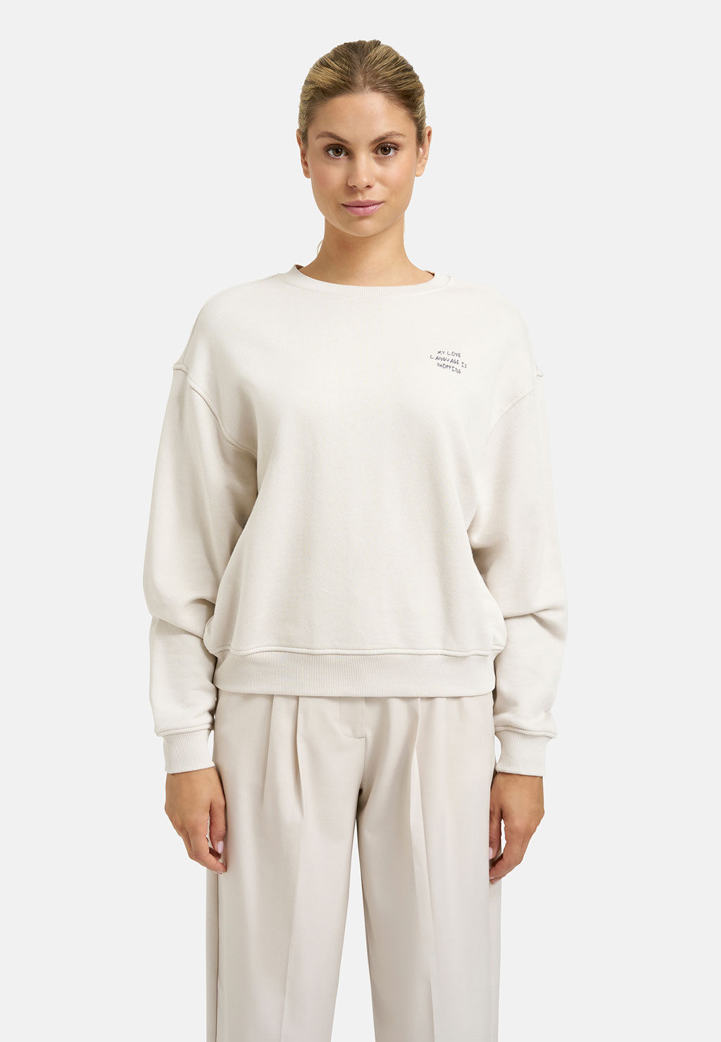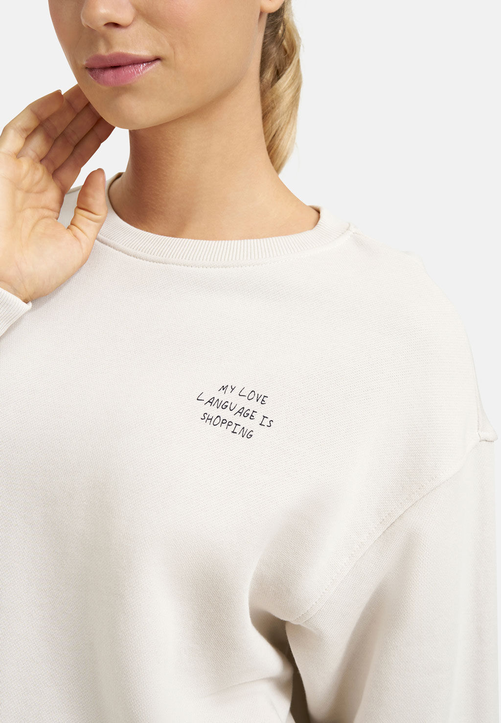 - Details: Kleiner Front-Print, großer Rückenprint mit Statement-Schriftzug, Rippbündchen an Saum und Ärmeln, überschnittene Schultern