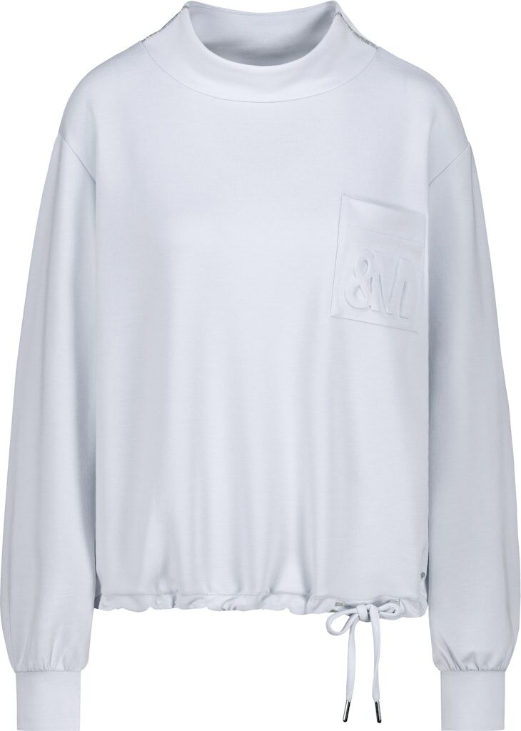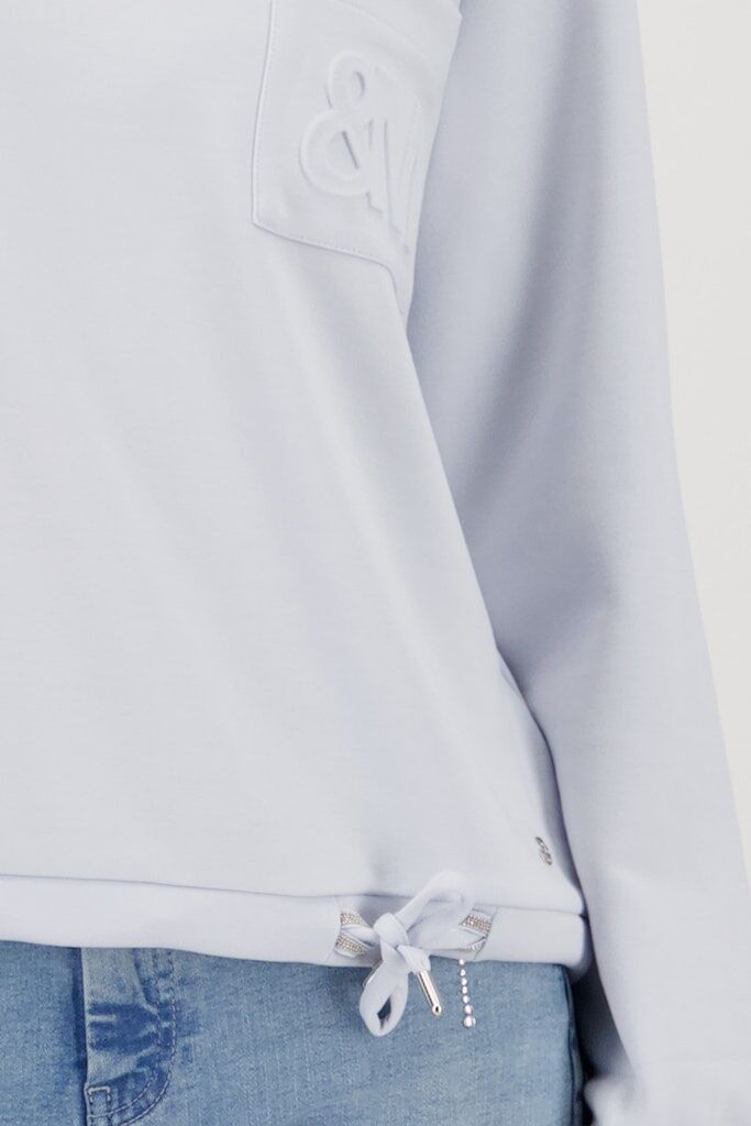 Dieses einzigartige Sweatshirt besticht durch seinen auffälligen 3D-Druck auf der Brusttasche und den eleganten Schmuck am Stehkragen.