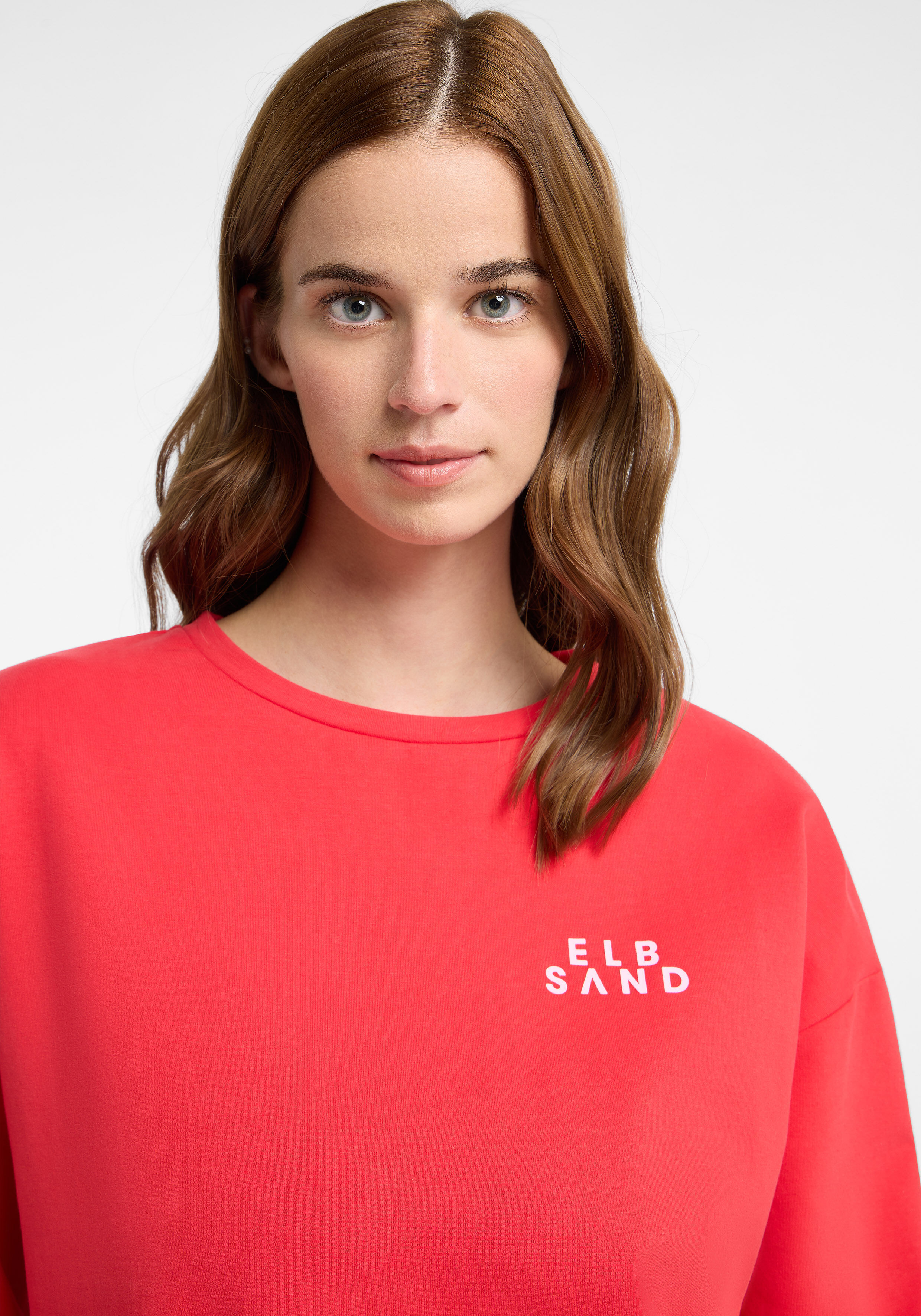Das Sweatshirt "Tilla" von ELBSAND überzeugt durch seinen sportlich-lässigen Stil und die hochwertige Verarbeitung. In der leuchtenden Farbe "Barberry" bringt es frische Farbe in deinen Kleiderschrank und sorgt für einen modernen Look - ideal für entspannte Freizeit-Outfits oder gemütliche Tage zu Hause. Der kleine, dezente Logo-Print auf der Brust setzt einen stilvollen Akzent. Mit seinem weiten Schnitt und dem soften Sweat-Material bietet dieses Sweatshirt maximalen Komfort bei gleichzeitig modischem Auftritt.