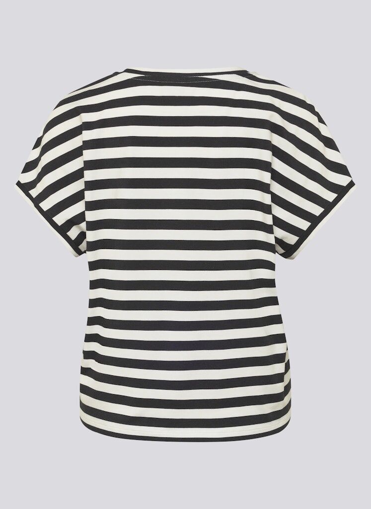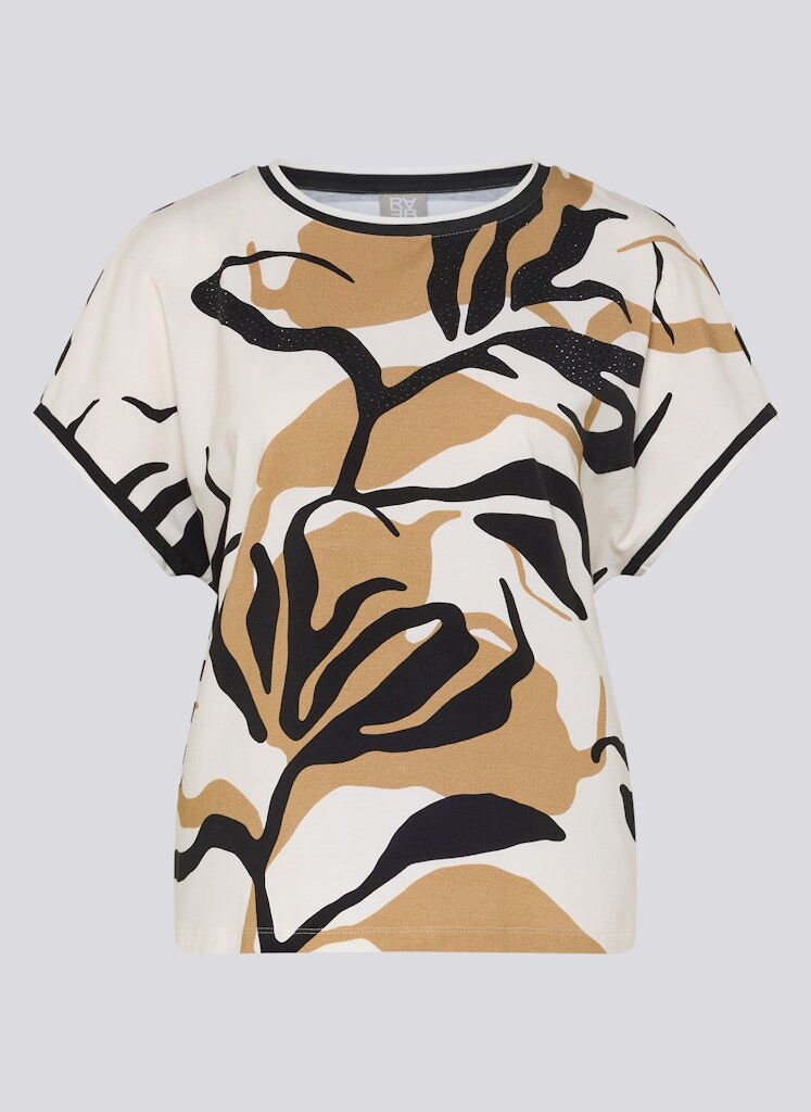 Ein spannender Mix aus floralen Formen und klassischem Streifenmuster macht dieses Shirt zu einem echten Hingucker. Die Vorderseite ist mit einem großzügigen Blätter-Design versehen, das durch glitzernde Details elegant hervorgehoben wird. Die Rückseite überrascht mit kontrastierender Streifenoptik. Das Shirt mit bequemem Rundhalsausschnitt und lockerem Schnitt trägt sich angenehm und wirkt dennoch raffiniert. Legere Passform mit überschnittenen Ärmeln. Florale Front mit Glitzerakzenten. Rückseite mit Streifenmuster. Angenehm weiche Qualität mit Modal. Elastischer Materialmix für Komfort.