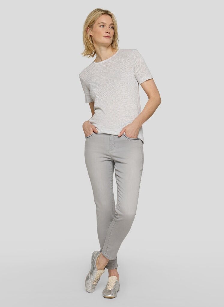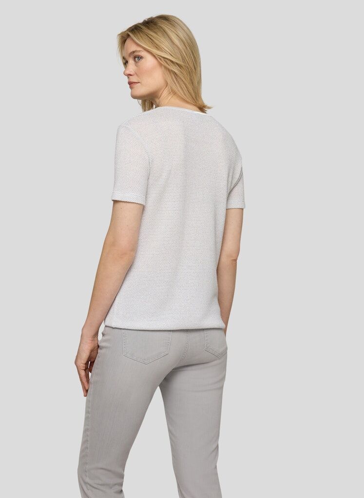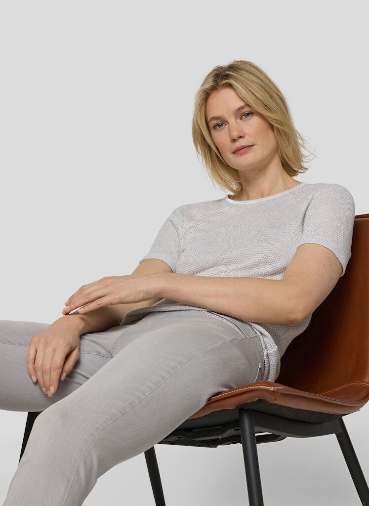 Dieses Feinstrick-Shirt überzeugt mit einer besonderen Materialkomposition aus 87 % Viskose und 13 % Maguey. Die Viskose sorgt für einen weichen, fließenden Griff, während der Maguey-Anteil dem Gewebe Struktur und eine dezente Standfestigkeit verleiht. Die Oberfläche zeigt sich leicht glänzend und unterstreicht die hochwertige Optik. Der klassische Rundhalsausschnitt und die schlichte Silhouette machen das Modell vielseitig kombinierbar. Leicht glänzende Oberfläche. Strukturierter Feinstrick. Weicher, fließender Griff. Klassischer Rundhalsausschnitt.