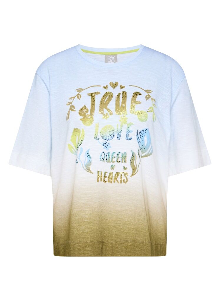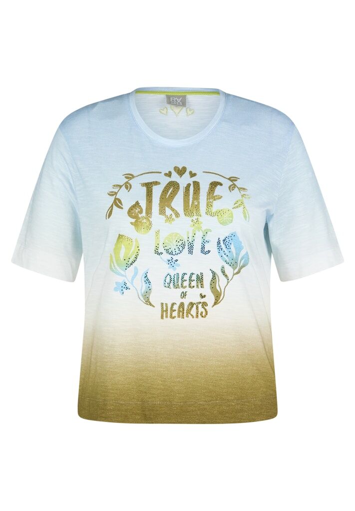 Der sanfte Farbverlauf verleiht diesem Shirt eine sommerliche, moderne Ausstrahlung. Ein dekorativer Frontprint mit funkelnden Strassdetails setzt im Vorderteil einen besonderen Akzent. Die locker fallende Form sorgt für einen entspannten Sitz. Rundhalsausschnitt und kurze Ärmel unterstreichen den lässigen Stil. Baumwoll-Modal-Mix. Farbverlauf-Design. Frontprint mit Strassdetails. Rundhalsausschnitt. Halbarm.