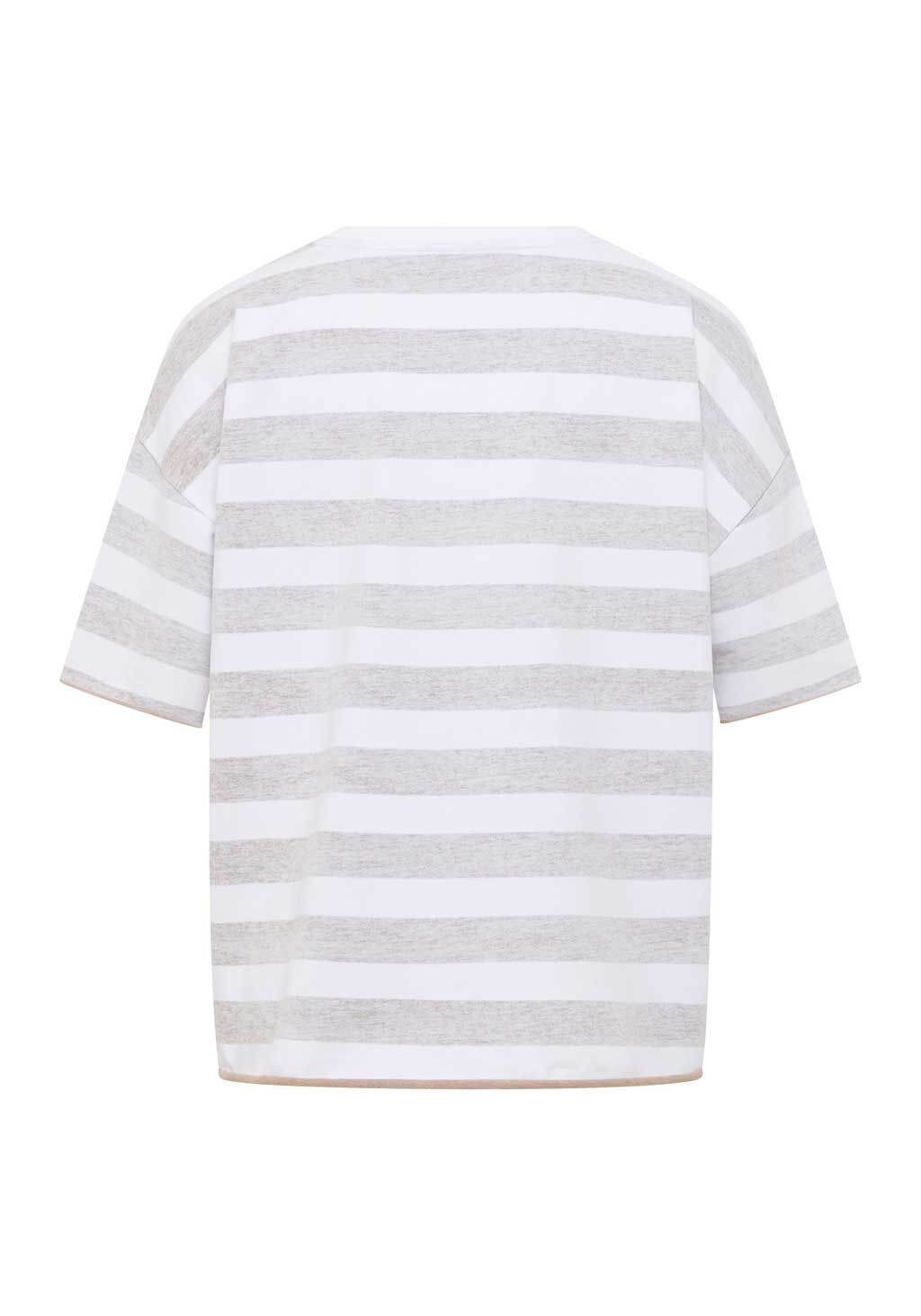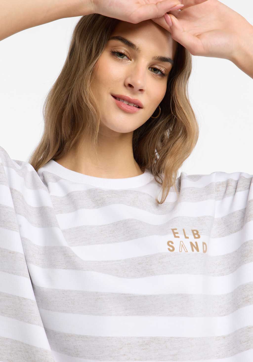 Das T-Shirt "Gry" von Elbsand bringt Charme in deine Garderobe. Mit seinem zeitlosen Streifenmuster in Weiß und Beige sowie der lässigen, weiten Passform ist es der ideale Begleiter für entspannte Casual-Looks. Der weiche Jersey sorgt für ein angenehmes Tragegefühl, während der dezente Logoprint dem Shirt eine sportive Note verleiht.