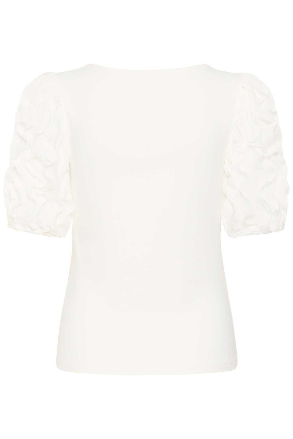 Das feminine Oberteil von Kaffe besticht durch seine schlichte Eleganz und raffinierte Details. In klassischem Weiß gehalten, lässt es sich vielseitig kombinieren und verleiht jedem Look eine stilvolle Leichtigkeit. Besonders die voluminösen Ärmel mit zarten Rüschen setzen modische Akzente, während der angenehme Stoff für hohen Tragekomfort sorgt - perfekt für Alltag und besondere Anlässe.