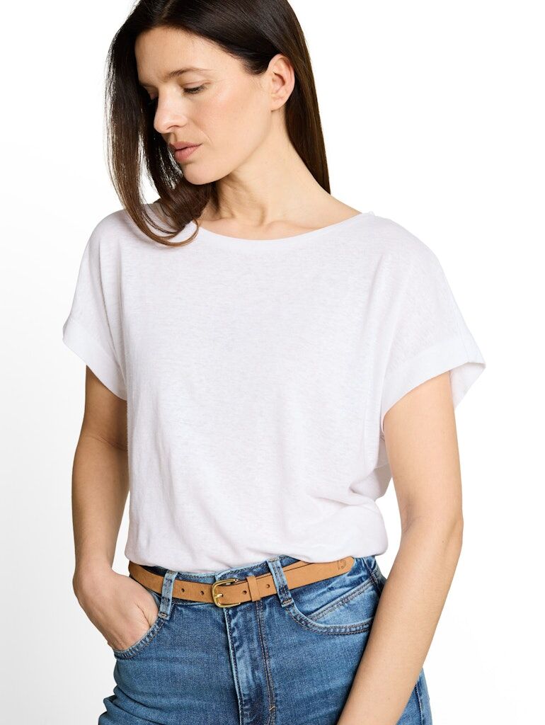 Loose Fit T-Shirt mit überschnittenem Vorder- und Rückteil. Aus einem Single-Jersey-Stoff mit Leinen-Anteil.