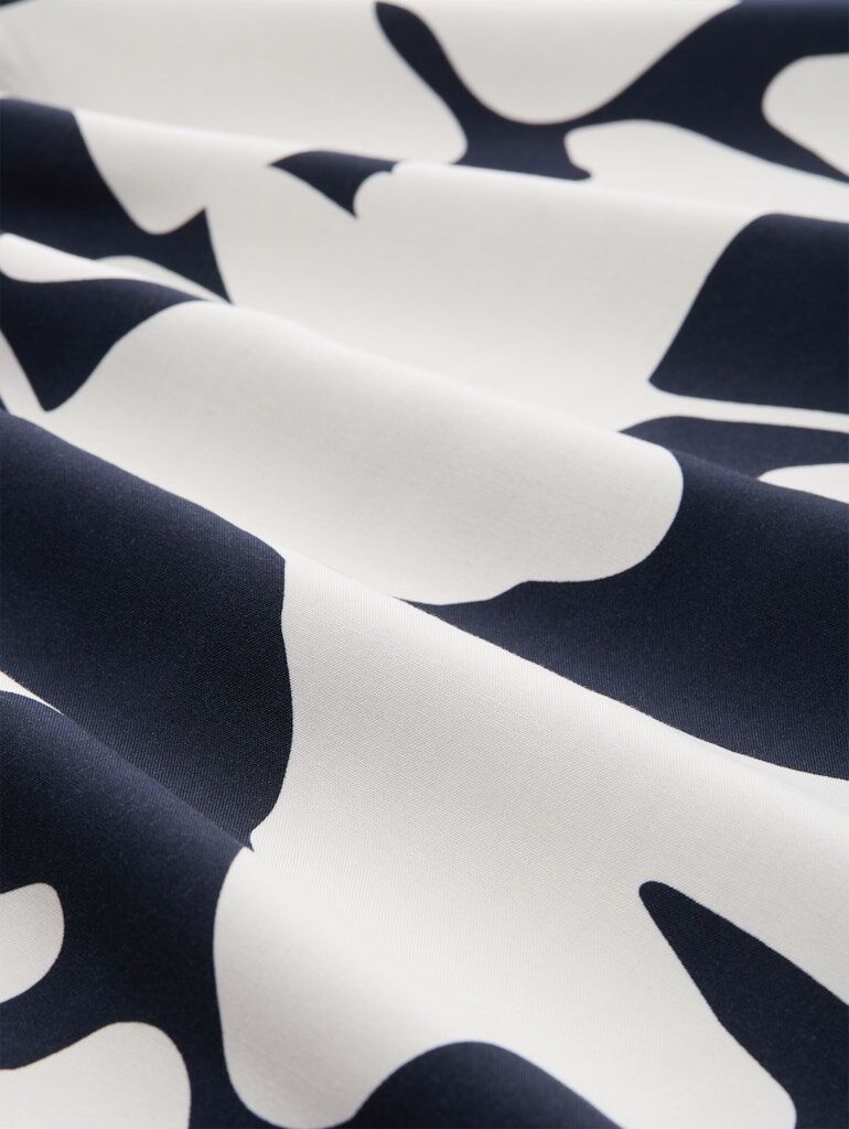 T-Shirt mit Muster auf der Vorderseite und kurzen Seitenschlitzen. Im Material-Mix mit gewebtem Stoff vorne und Jersey hinten.