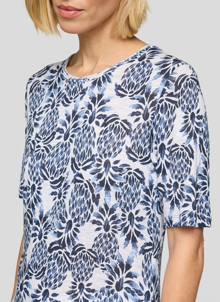 Das florale Allover-Muster verleiht dem Shirt eine frische, lebendige Ausstrahlung. Die gerade, bequeme Form fällt locker und eignet sich für vielseitige Kombinationen im Alltag. Ein klassischer Rundhalsausschnitt und kurze Ärmel unterstreichen den unkomplizierten Stil. Die weiche Qualität liegt angenehm auf der Haut. Baumwoll-Viskose-Mix. Florales Allover-Muster. Rundhalsausschnitt. Halbarm. Gerade Passform.
