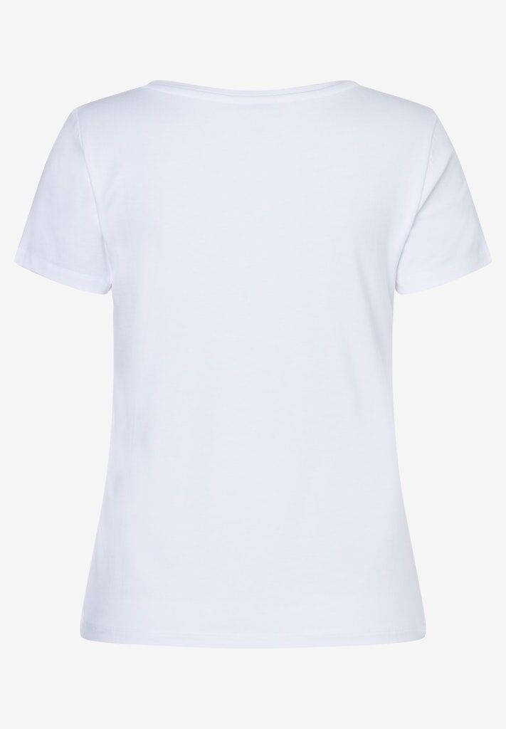 Das weiße, sommerliche T-Shirt von MORE & MORE präsentiert sich mit kurzen Ärmel, rundem Ausschnitt und "Eis am Stil"- Print auf der Front. Es lässt sich super vielseitig kombinieren, egal ob zum fließenden Rock, zur verwaschenen Jeans oder zur klassischen Businesshose.