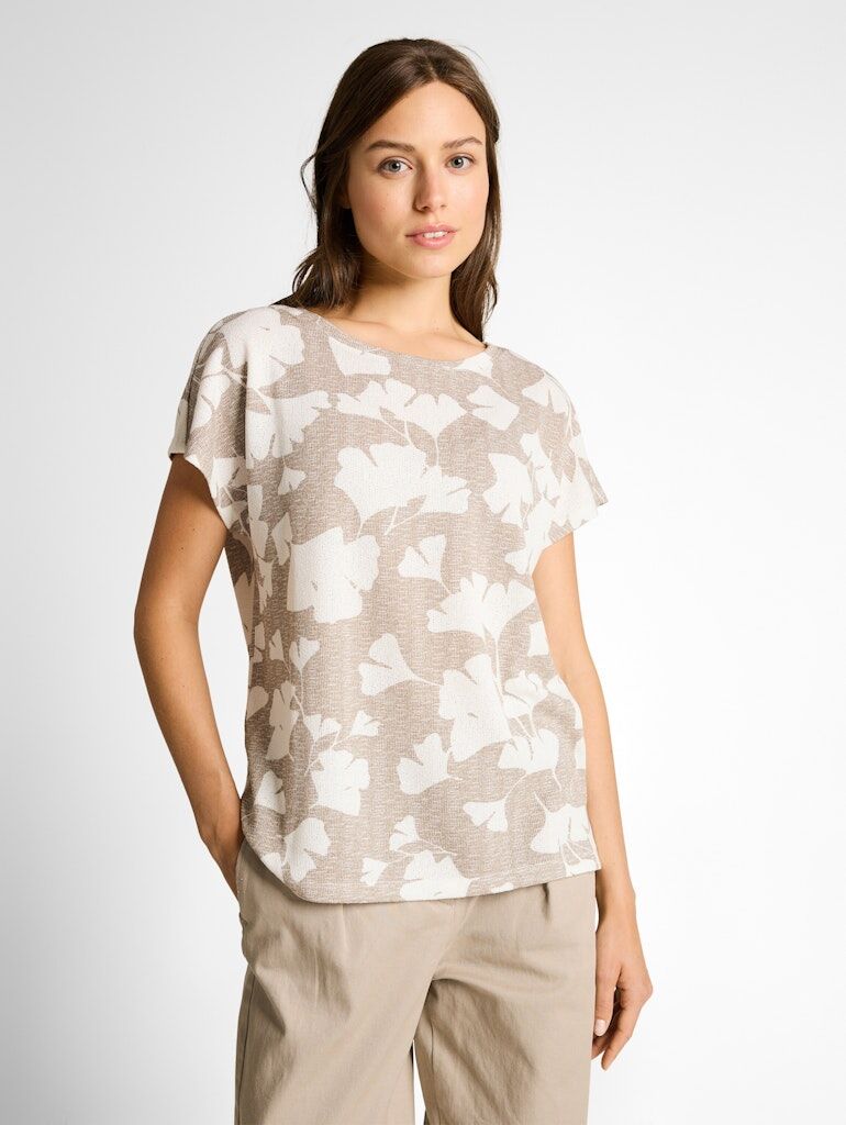 Gemustertes T-Shirt in Strick-Optik mit kurzen Seitenschlitzen