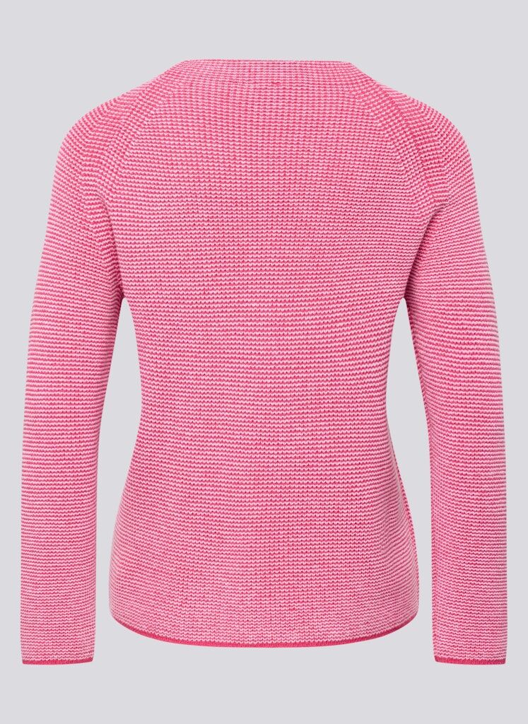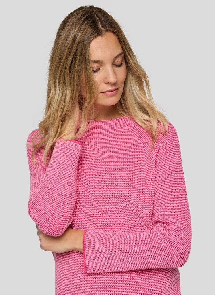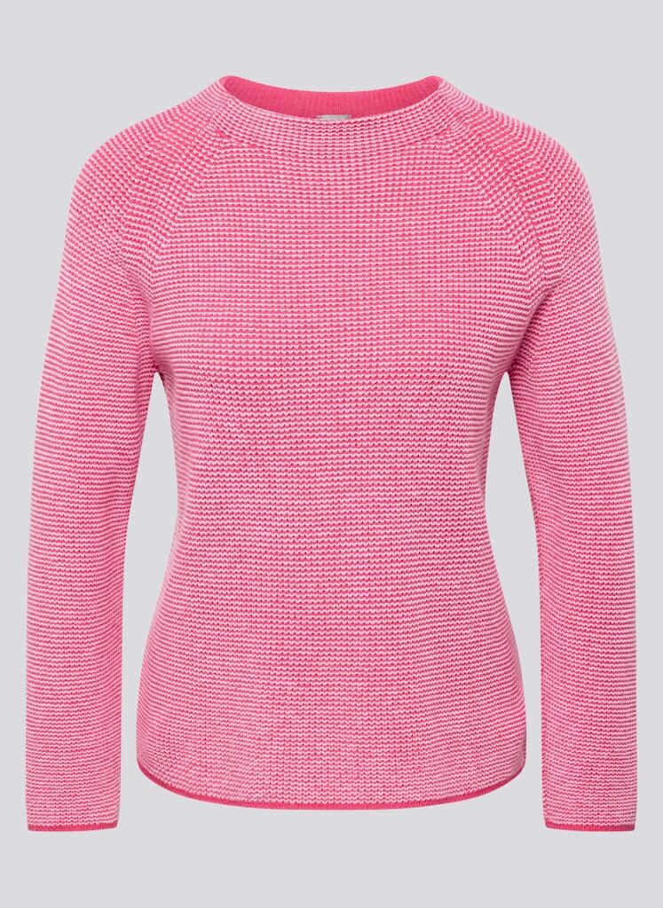 Dieser figurumspielende Pullover überzeugt mit seiner kompakten Struktur und der lebendigen Farbgebung. Die Raglanärmel unterstreichen den sportlich-femininen Look, während der fein gestrickte Rundhalsausschnitt für ein klassisches Finish sorgt. Der strukturierte Strick sorgt für angenehmen Tragekomfort und verleiht dem Modell eine moderne Optik. Strukturierter Strick. Rundhalsausschnitt. Raglanärmel. Gerader Saumabschluss. Pflegeleichtes Material.