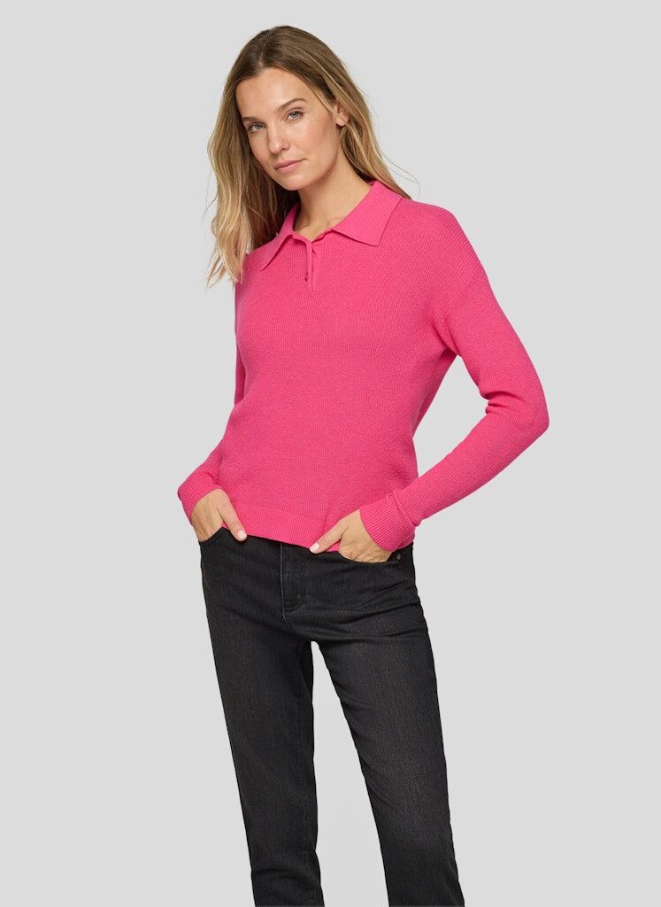 Dieser Pullover aus softem Feinstrick überzeugt mit seiner formschönen Silhouette und dem sportiv angelehnten Polokragen. Die feine Rippstruktur sorgt für ein angenehmes Tragegefühl und passt sich leicht an die Körperform an. Die kleine Knopfleiste unter dem Kragen ergänzt den Look mit einer dezenten Note. Ideal für vielseitige Kombinationen im Alltag. Strukturierter Rippstrick. Polokragen mit Knopfleiste. Leicht taillierte Form. Softer Materialmix. Vielseitig kombinierbar.