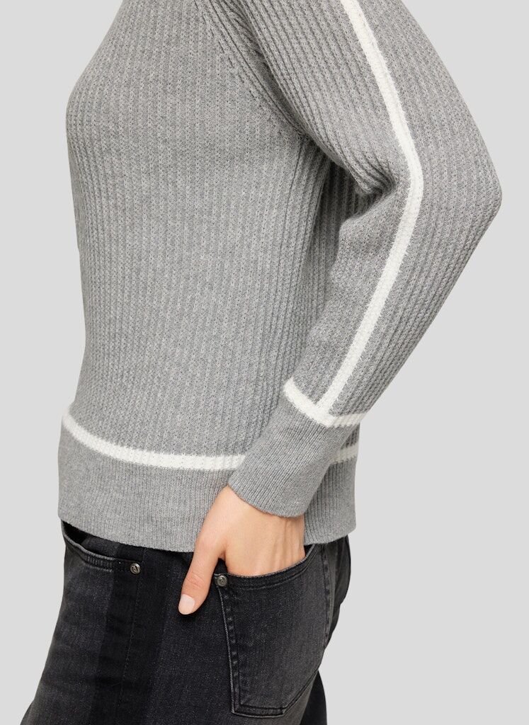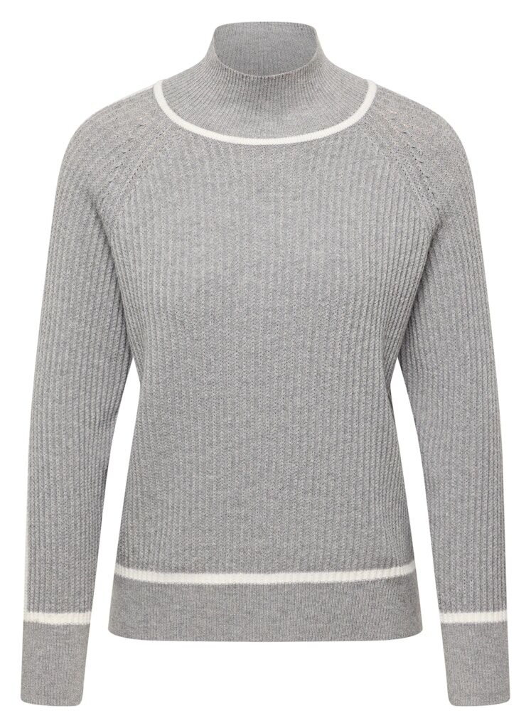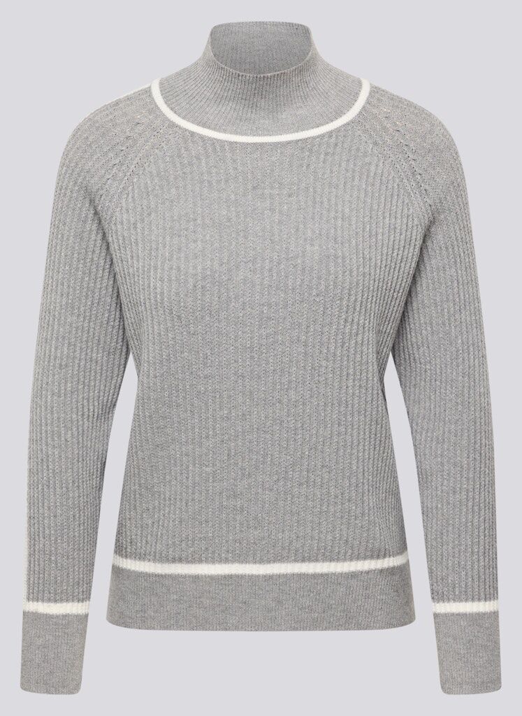Der modern gehaltene Feinstrickpullover überzeugt durch seine geradlinige Form mit betonter Rippstruktur. Der hohe Stehkragen sorgt für eine angenehme Wärme am Hals, während schmale Kontraststreifen an Kragen, Saum und Ärmeln einen dezenten Akzent setzen. Dank des Materialmixes aus Polyester, Viskose und Polyamid trägt sich der Pullover angenehm weich und formbeständig _ perfekt für stilvolle Alltagslooks. Gerippter Stehkragen. Dezente Kontrastdetails. Feine Rippstruktur. Weicher, formstabiler Strick. Gerade, zeitlose Passform.