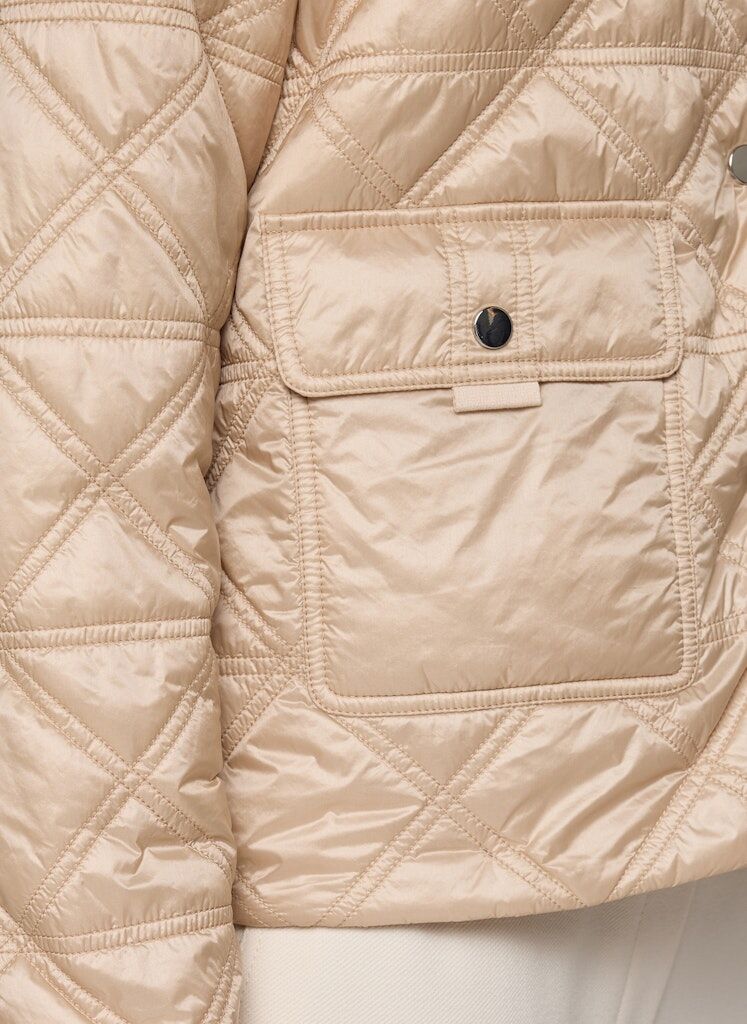 Diese wattierte Steppjacke punktet mit sportiver Optik und praktischen Details. Die großen Pattentaschen mit Druckknopf bieten Stauraum, während der Verzicht auf einen Kragen dem Look eine moderne Note verleiht. Der dezente Glanz rundet das Design stilvoll ab. Druckknopfverschluss. Zwei Pattentaschen vorne. Gesteppte Struktur. Gerade geschnitten. Leicht glänzendes Material.