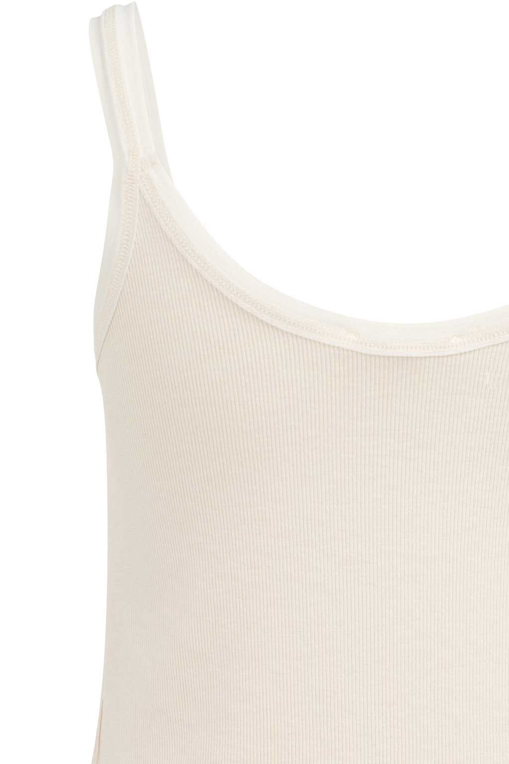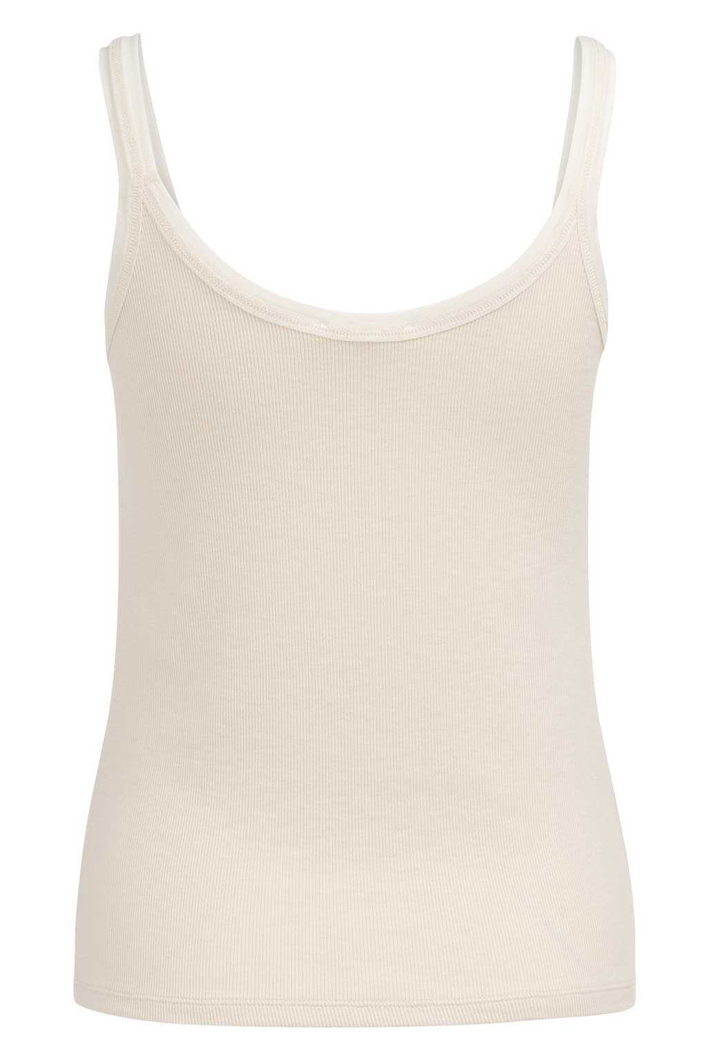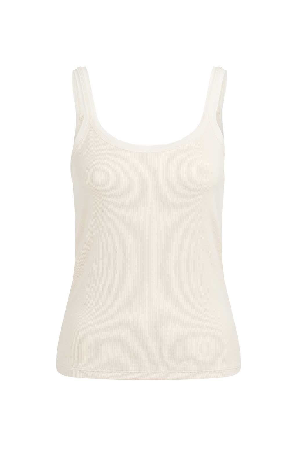 Dieses schlichte Top von Yaya ist ein vielseitiges Essential für jede Garderobe. Der weiche, gerippte Stoff schmiegt sich angenehm an den Körper an und sorgt für eine feminine, figurbetonte Passform. In einem zeitlosen Off-White gehalten, lässt sich das Top sowohl solo als auch unter Blusen oder Blazern perfekt kombinieren - ein echtes Must-have für jeden Tag.