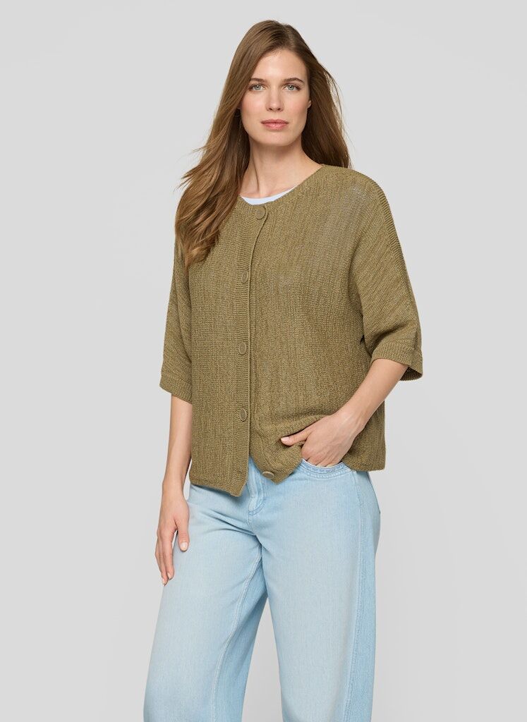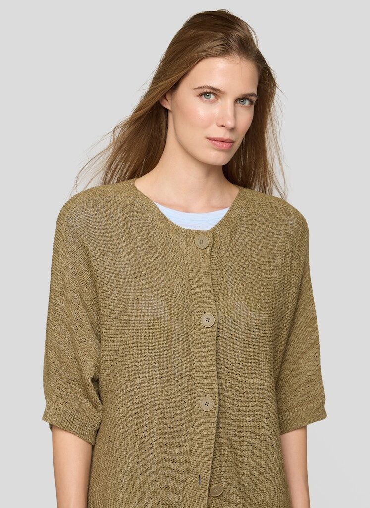 Die ausgeprägte Struktur verleiht dieser Jacke eine lebendige, moderne Optik. Die gerade, locker fallende Form wirkt entspannt und lässt sich vielseitig kombinieren. Eine durchgehende Knopfleiste und der schlichte Rundhalsausschnitt unterstreichen den klaren Stil. Die 3/4-Ärmel sorgen für eine leichte, unkomplizierte Ausstrahlung. Baumwollmix. Markante Strukturqualität. Rundhalsausschnitt. Durchgehende Knopfleiste. 3/4-Ärmel.