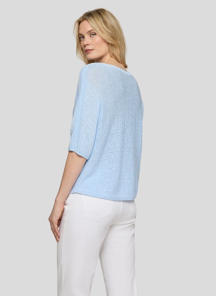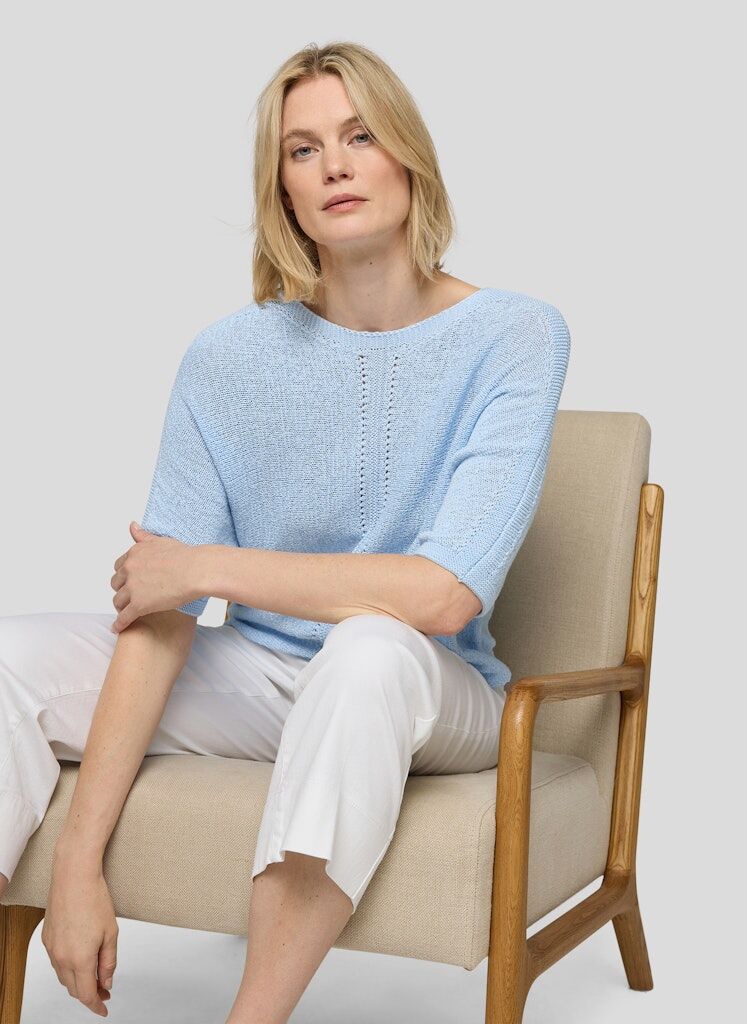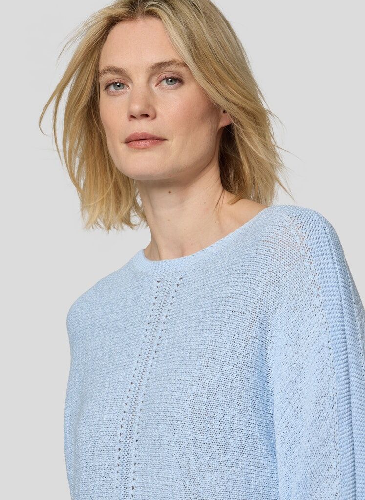 Der offene Ajour-Strick verleiht diesem Pullover eine luftige, sommerliche Ausstrahlung. Breite Streifen setzen einen lebendigen Akzent und betonen den lässigen Look. Die locker fallende Form mit überschnittenen Schultern sorgt für angenehmen Tragekomfort. Ein weicher Baumwollmix rundet das Modell ab und macht es zu einem unkomplizierten Begleiter für viele Gelegenheiten. Luftiger Ajourstrick. Breite Streifenoptik. Rundhalsausschnitt. Überschnittene Schultern. Baumwollmix mit Metallanteil.