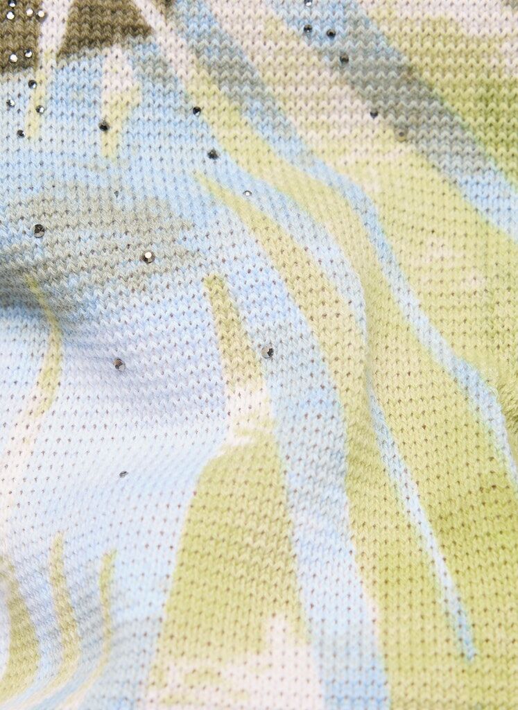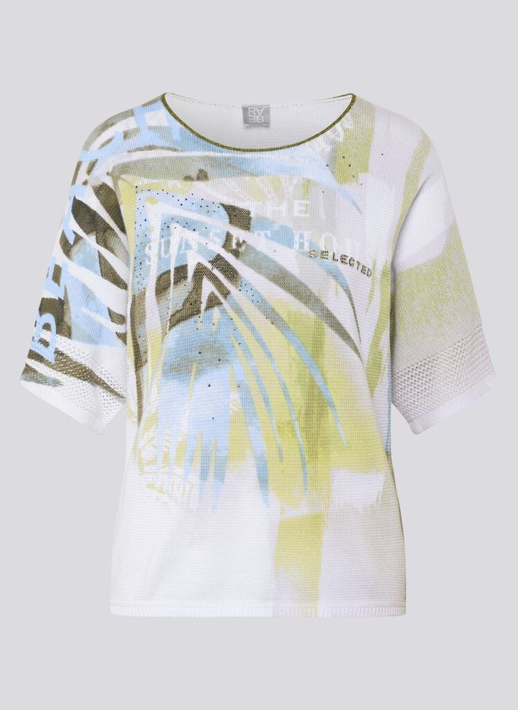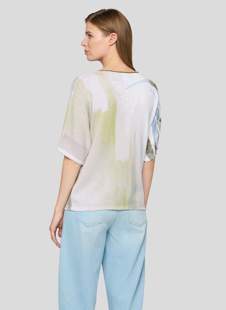 Der leichte Strick verleiht diesem Pullover eine feine Struktur und ein angenehmes Tragegefühl. Ein moderner Frontprint sorgt für eine lebendige Optik, während kleine Strassdetails dezente Glanzakzente setzen. Der Rundhalsausschnitt und die kurzen Ärmel unterstreichen den entspannten Charakter. Reine Baumwolle macht das Modell besonders angenehm zu tragen. Reine Baumwolle. Feine Strickstruktur. Frontprint mit Strassdetails. Rundhalsausschnitt. Kurze Ärmel.