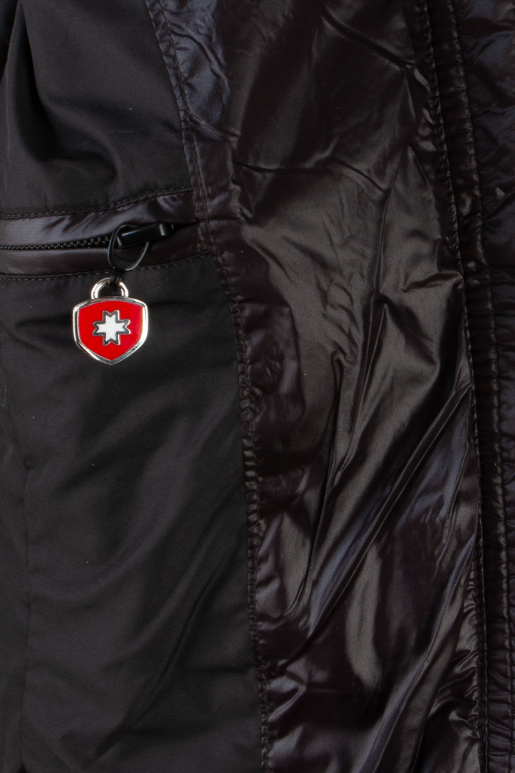- Materialeigenschaften: Glänzende Oberfläche, leicht wattiert, wasserabweisend, windabweisend, pflegeleicht
