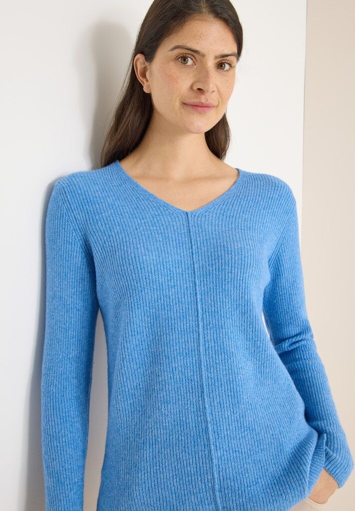 Mit V-Ausschnitt und feiner Rippstruktur zeigt sich dieser Strickpullover von CECIL für Damen in zeitlosem Design. Der Baumwollmix mit Stretchanteil sorgt für angenehmen Tragekomfort. Perfekt für vielseitige Everyday-Looks. Strickpullover Rippstruktur V-Ausschnitt Langarm Baumwollmix mit Stretchanteil Material: 37% Baumwolle, 34% Polyacryl, 26% Polyester, 3% Elasthan