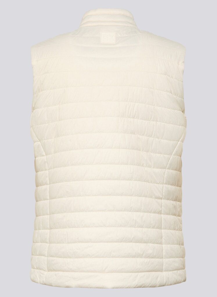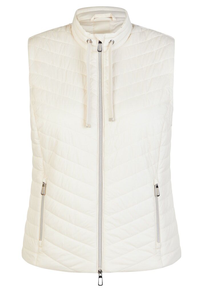 Diese ärmellose Steppweste punktet mit ihrer leichten Wattierung, schräg verlaufenden Steppnähten und praktischen Reißverschlusstaschen. Der hohe Kragen mit Tunnelzug rundet das funktionale Design stilvoll ab _ ideal für Übergangslooks mit sportivem Charakter.