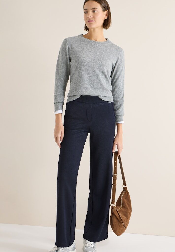 Diese Wide Leg Hose im Style Neele von CECIL für Damen überzeugt durch ihren lockeren Schnitt, seitliche Taschen und einen elastischen Bund hinten, der für zusätzlichen Tragekomfort sorgt. Der schlichte Look macht die Stoffhose vielseitig kombinierbar. Piqué Hose Loose Fit Wide Legs High Waist Bequem Material: 84% Polyester, 16% Viskose