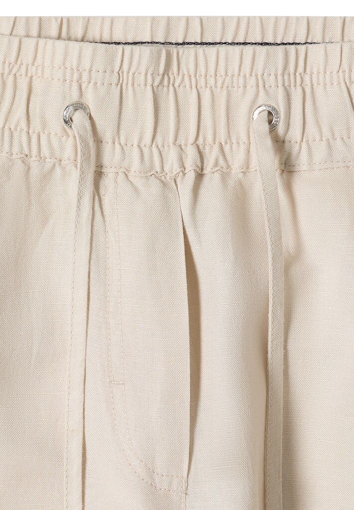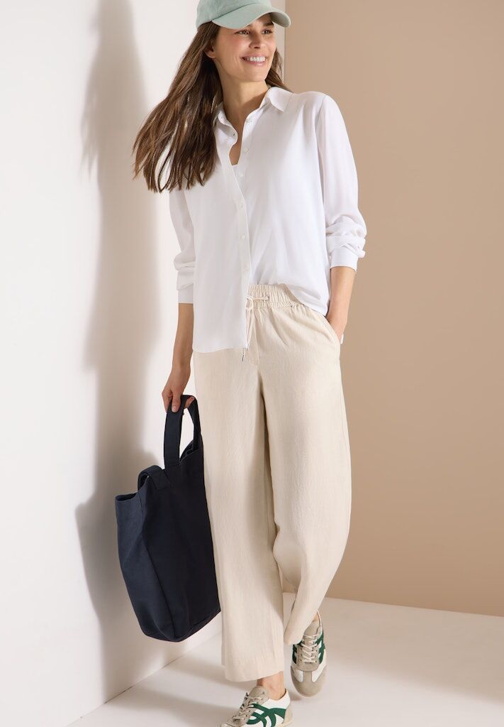Diese Wide Leg Hose von CECIL für Damen im Style Neele überzeugt mit lockerem Loose Fit und sommerlicher Leichtigkeit. Die Wide Legs und die High Waist Passform sorgen für ein entspanntes Tragegefühl. Seitliche Taschen und der elastische Bund mit Tunnelzug machen die Stoffhose besonders bequem. Der Leinen-Viskosemix fühlt sich angenehm an und eignet sich ideal für warme Tage. Stoffhose aus Leinenmix Loose Fit Wide Legs High Waist Sommerlich und luftig Material: 55% Leinen, 45% Viskose