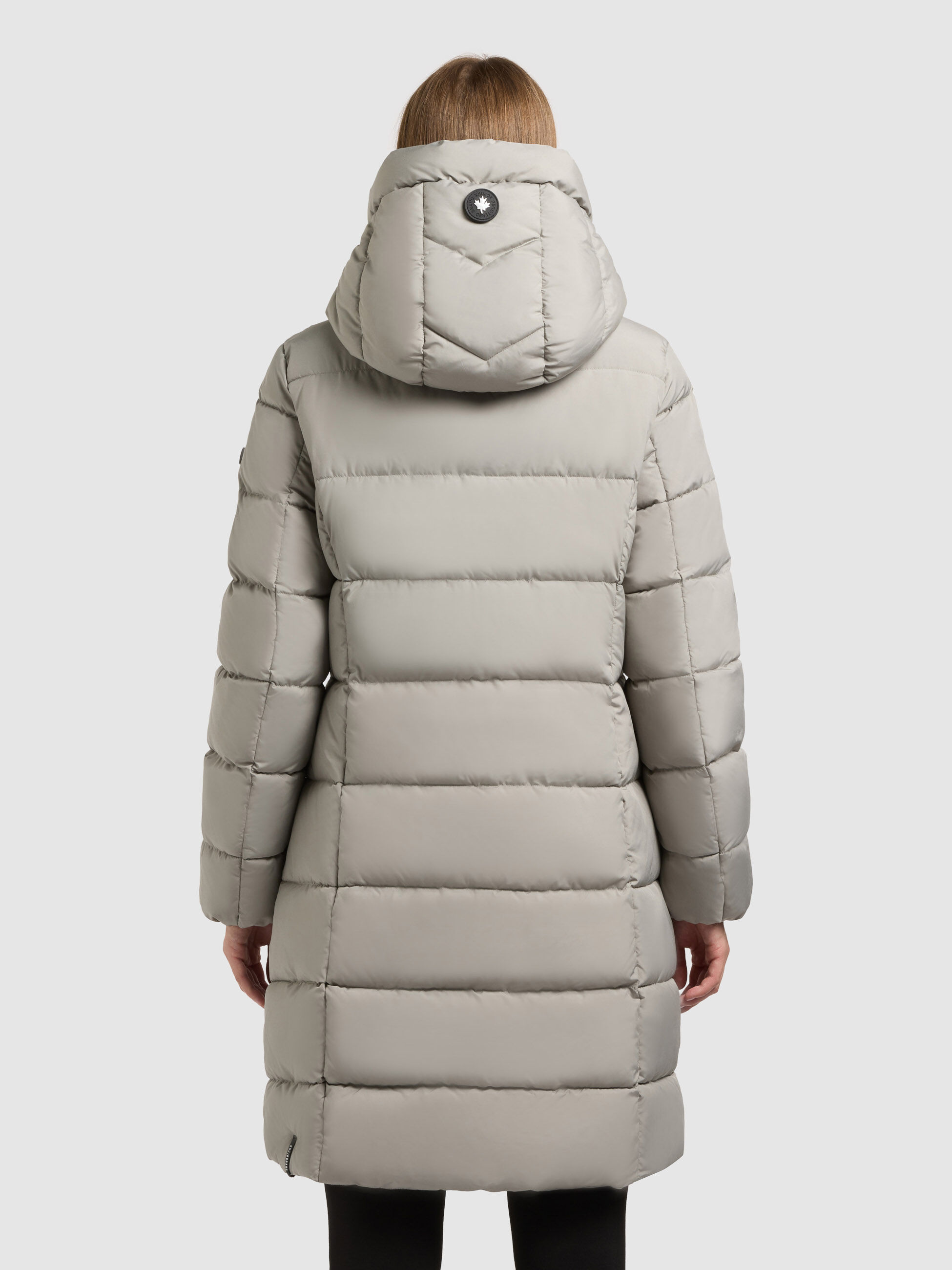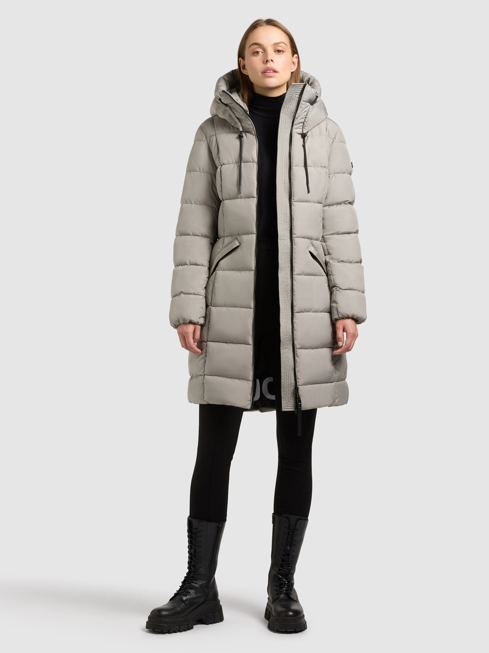 Der blassgrüne khujo Mantel "ARLENE" vereint feminine Silhouette mit funktionaler Winterausstattung. Der taillierte Schnitt, die großzügige Kapuze und das leichte Taftfutter sorgen für eine stilvolle und gleichzeitig warme Lösung an frostigen Tagen. Mit liebevollen Details wie Belüftungsösen und kuscheligen Fleece-Taschen bietet dieser Steppmantel alles, was du für kalte Winterspaziergänge brauchst - warm, bequem und modern.