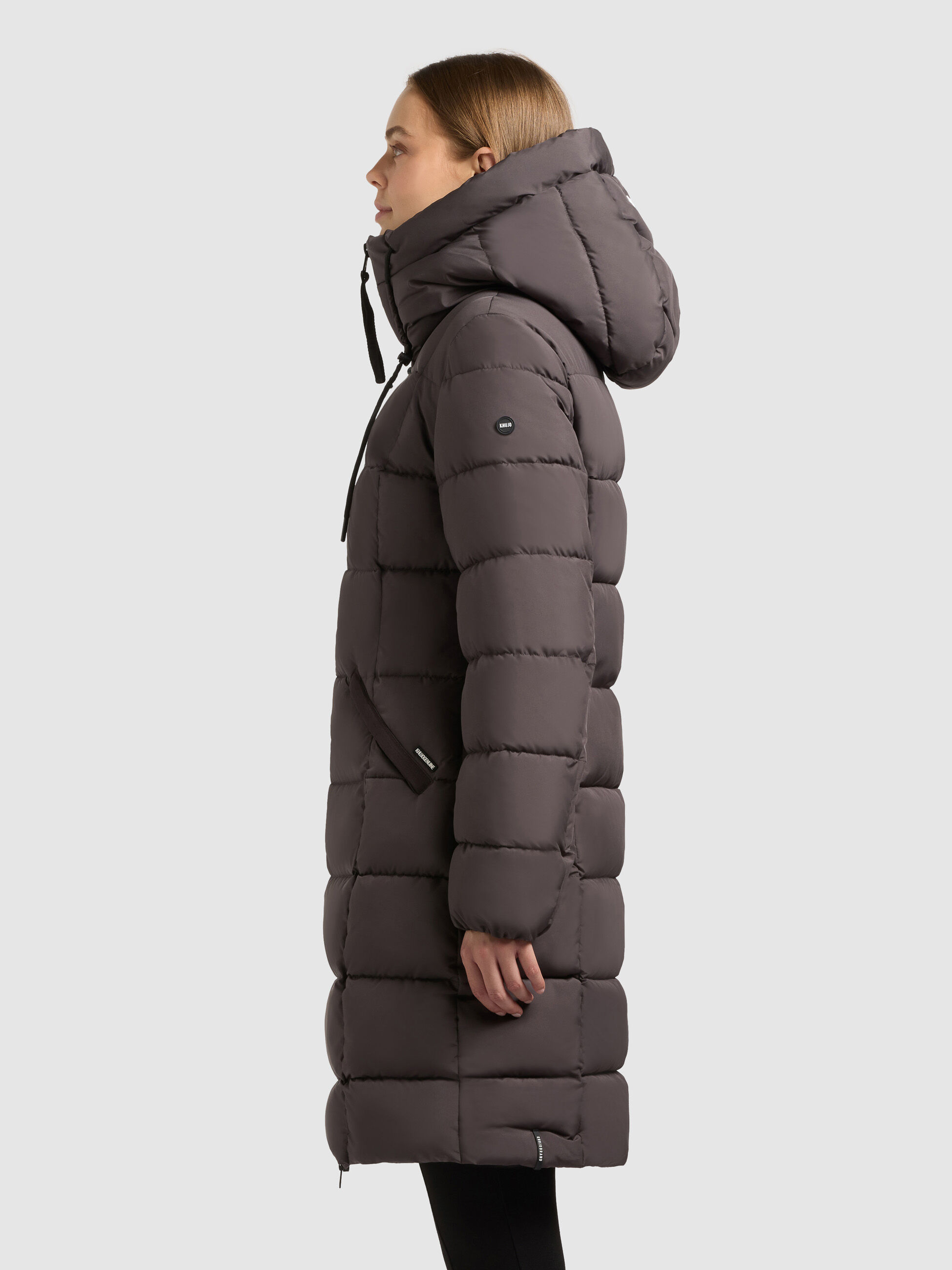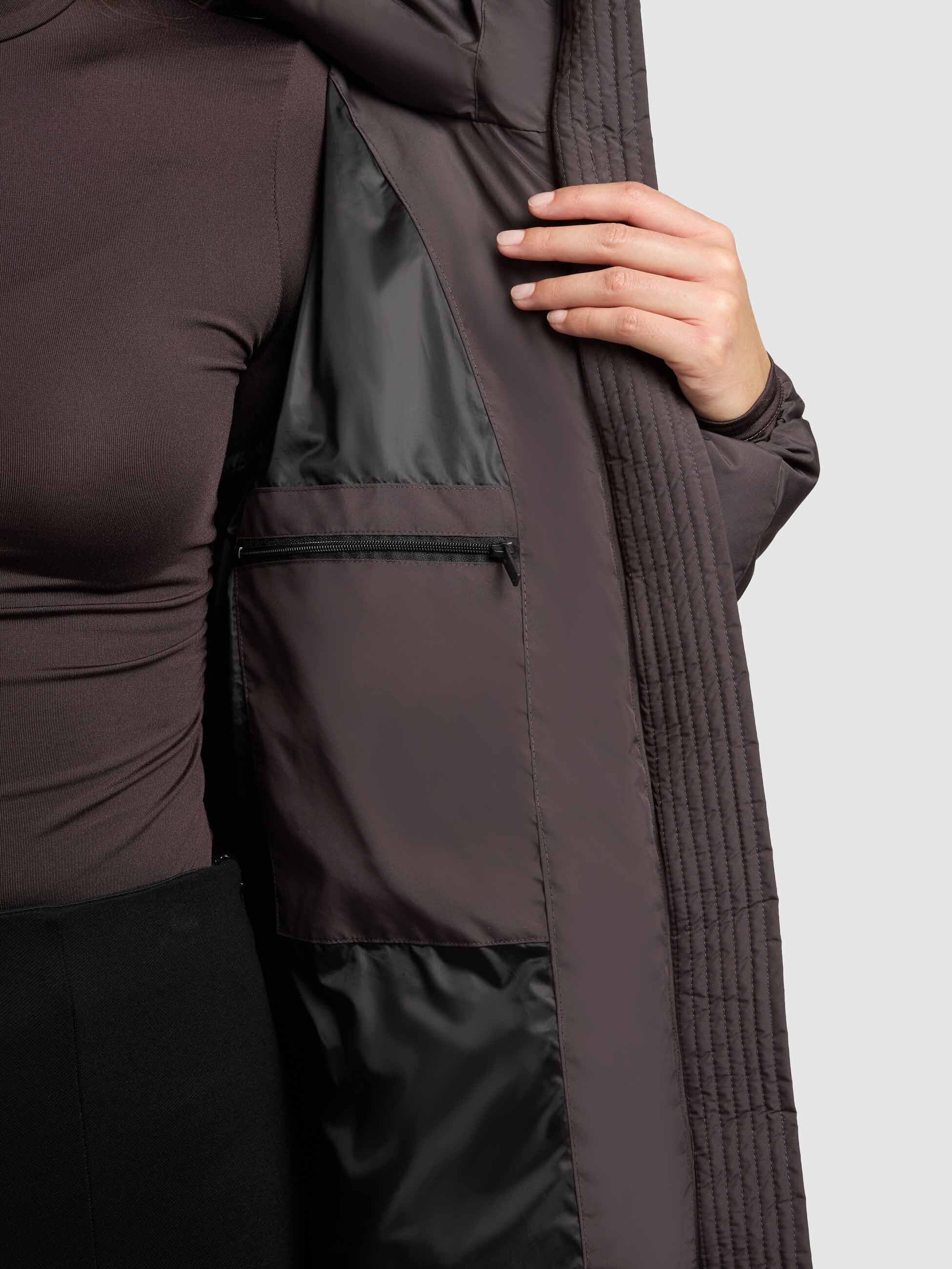 Der khujo Mantel "ARLENE" in "Moody Plum" vereint feminine Silhouette mit funktionaler Winterausstattung. Der taillierte Schnitt, die großzügige Kapuze und das leichte Taftfutter sorgen für eine stilvolle und gleichzeitig warme Lösung an frostigen Tagen. Mit liebevollen Details wie Belüftungsösen und kuscheligen Fleece-Taschen bietet dieser Steppmantel alles, was du für kalte Winterspaziergänge brauchst - warm, bequem und modern.