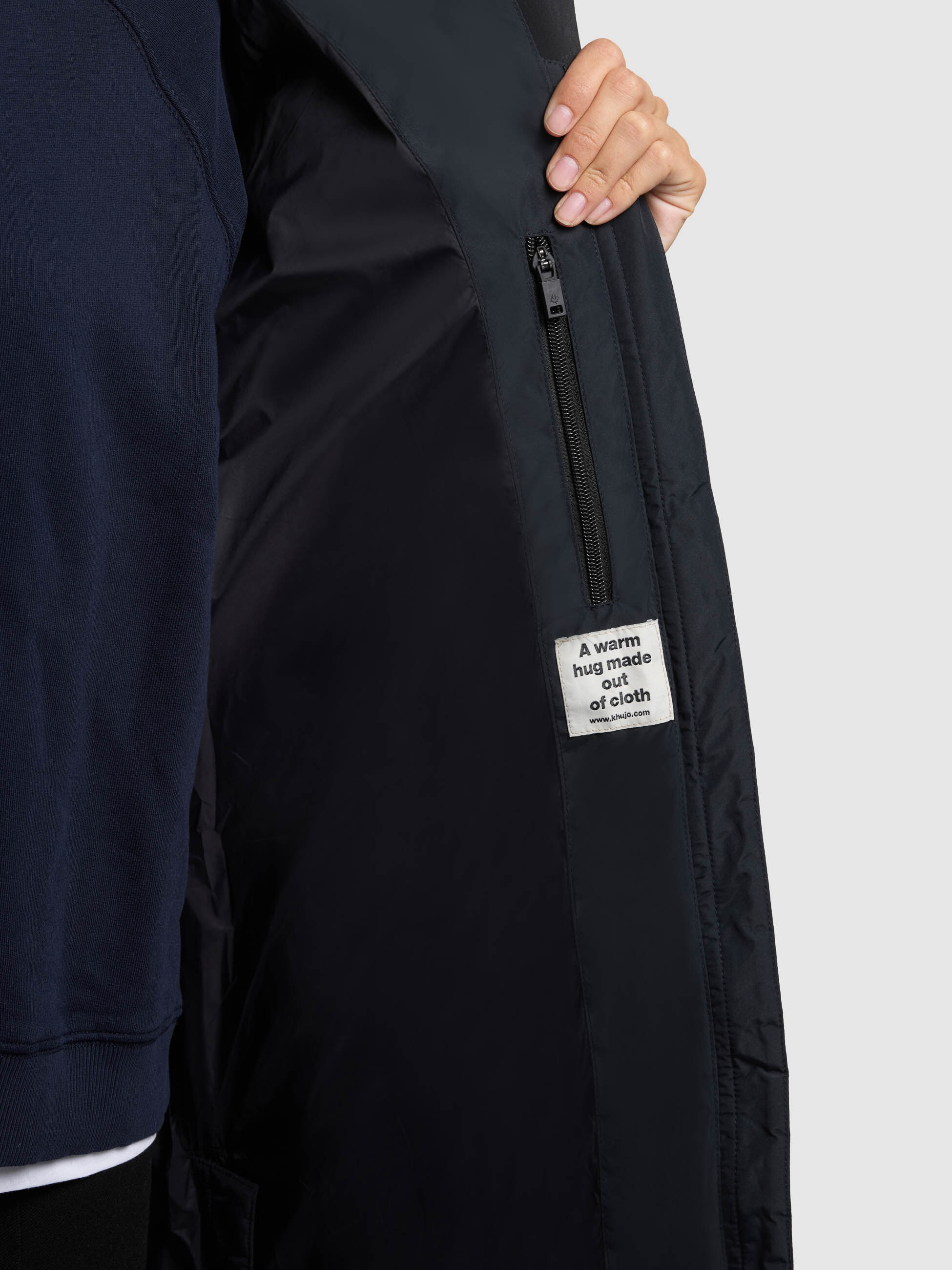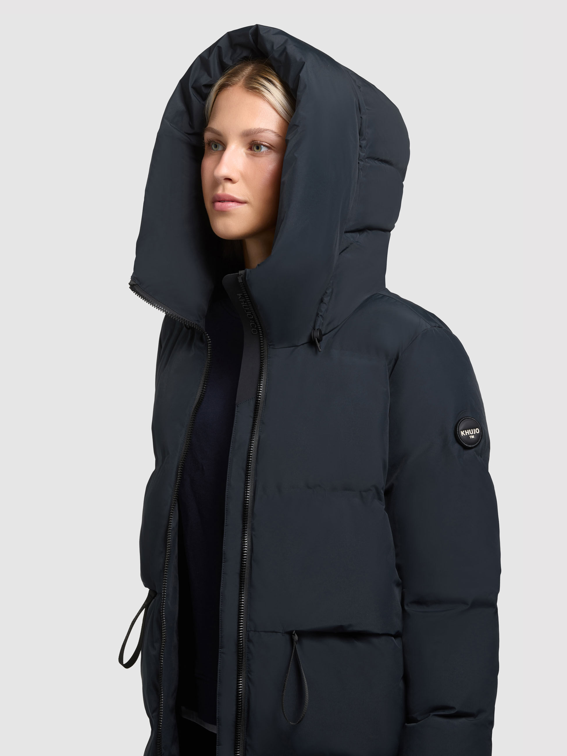 Kälte hat keine Chance - mit dem Wintermantel "AROMA 2" von khujo in der Farbe Port Blue bleibst du stilvoll warm. Die hoch schließende Kapuze mit Kordelzug, wärmende Fleecefutter-Taschen und eine wasserabweisende PU-Beschichtung bieten dir optimalen Schutz an frostigen Tagen. Durchdachte Details wie der Zwei-Wege-Reißverschluss und seitliche Schlitze mit Zipper sorgen für maximalen Komfort und Bewegungsfreiheit.