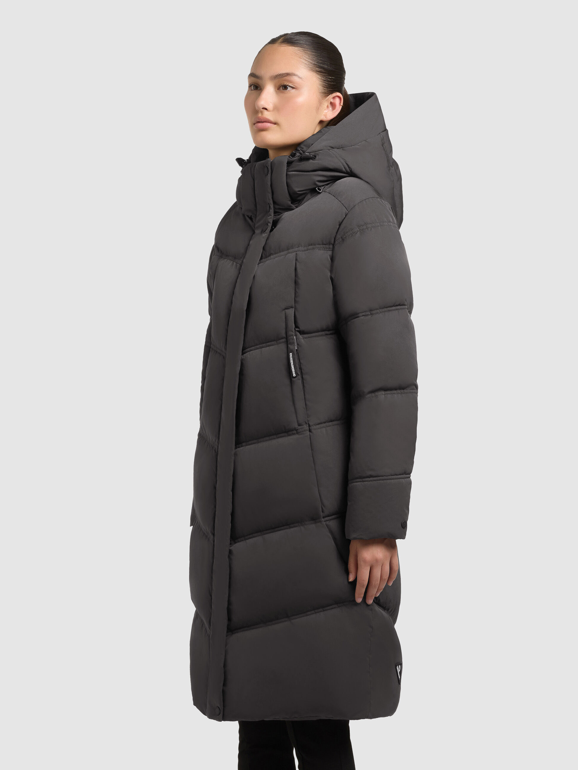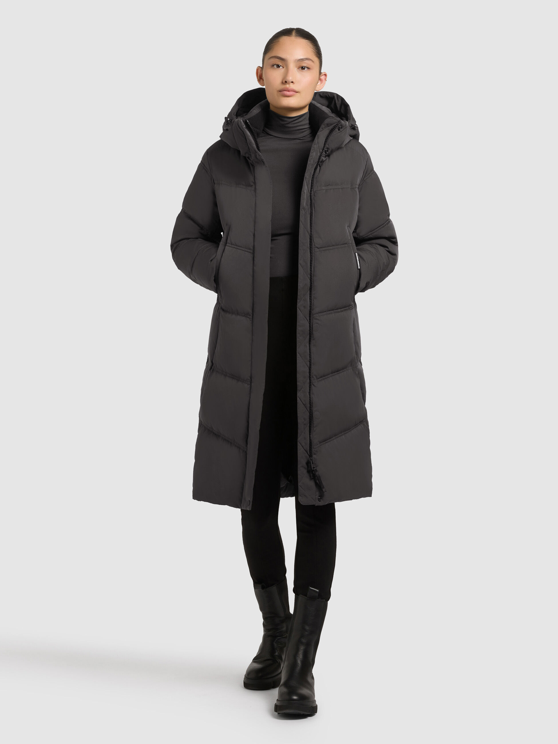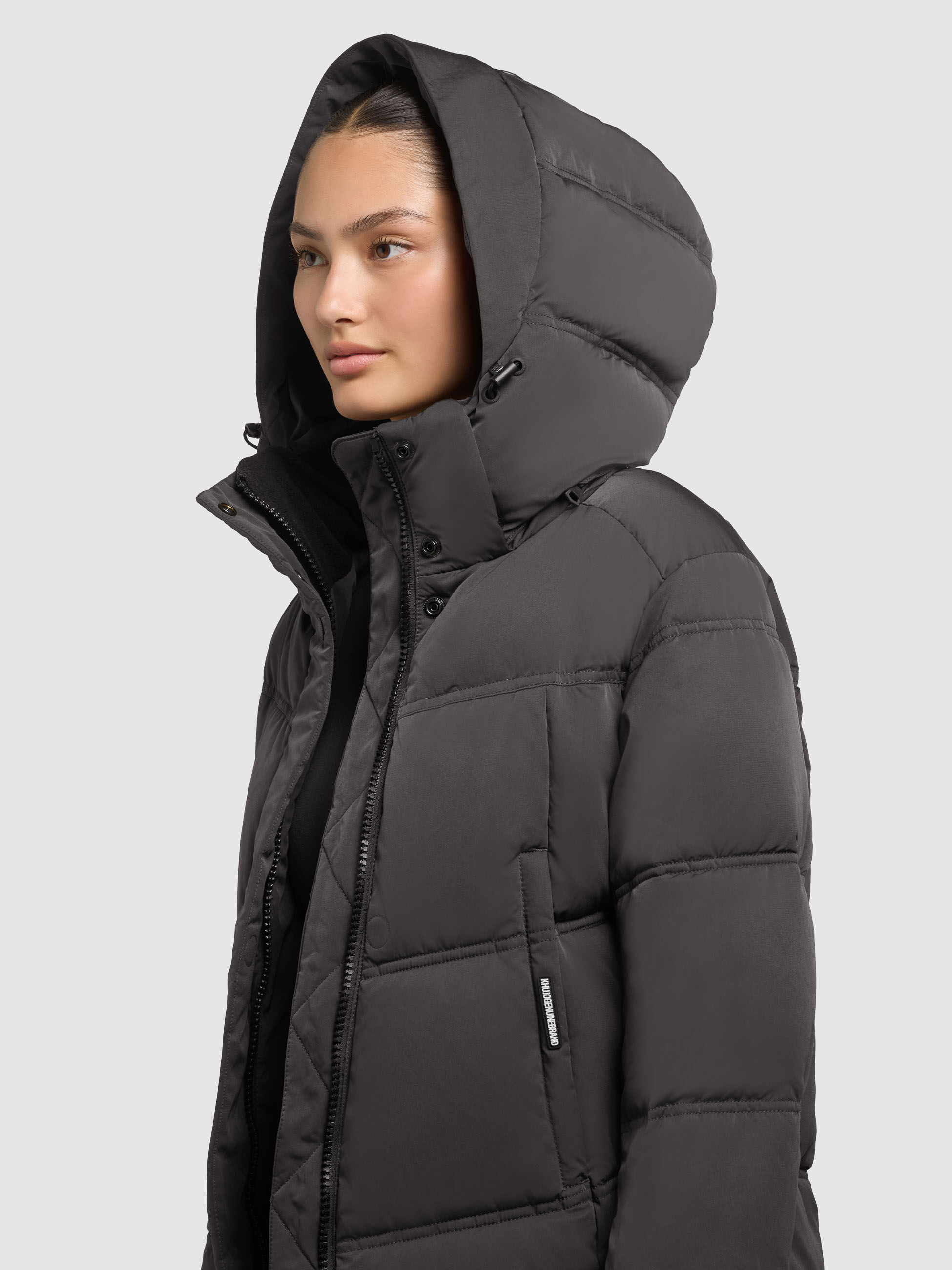 Der wattierte Wintermantel "Graya 2" von khujo ist der perfekte Begleiter für kalte Tage. Mit seiner hoch schließenden, abnehmbaren Kapuze und dem kuscheligen Fleecefutter am Stehkragen bietet er optimalen Schutz vor Wind und Kälte. Durchdachte Details wie eine Windschutzblende mit Magnetverschluss, ein Zwei-Wege-Reißverschluss und elastische Bündchen am Ärmelfutter sorgen für hohen Tragekomfort. Reißverschlusstaschen mit Fleecefutter wärmen die Hände, während eine zusätzliche Innentasche Platz für persönliche Dinge bietet. Ein funktionales Must-have für den Winter, das mit schlichter Eleganz überzeugt.