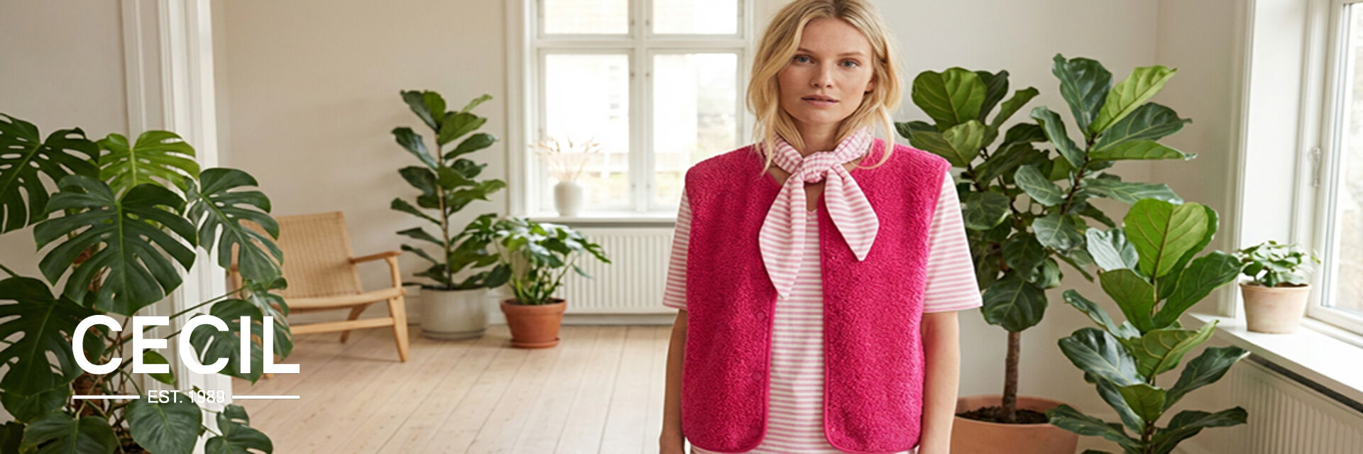 Die Mode von Cecil ist wie die Kundinnen, die sie tragen, authentisch und unkompliziert. Auch wenn jeden Monat eine neue Kollektion präsentiert wird, gibt sich das Label modern, aber verzichtet bewusst auf schnell wechselnde Trends. Wer es casual oder sportiv mag, der findet bei uns im Onlineshop eine Auswahl an Shirts, Blusen, Hosen, Jeans und Jacken von Cecil. Viel Spaß beim Einkleiden!